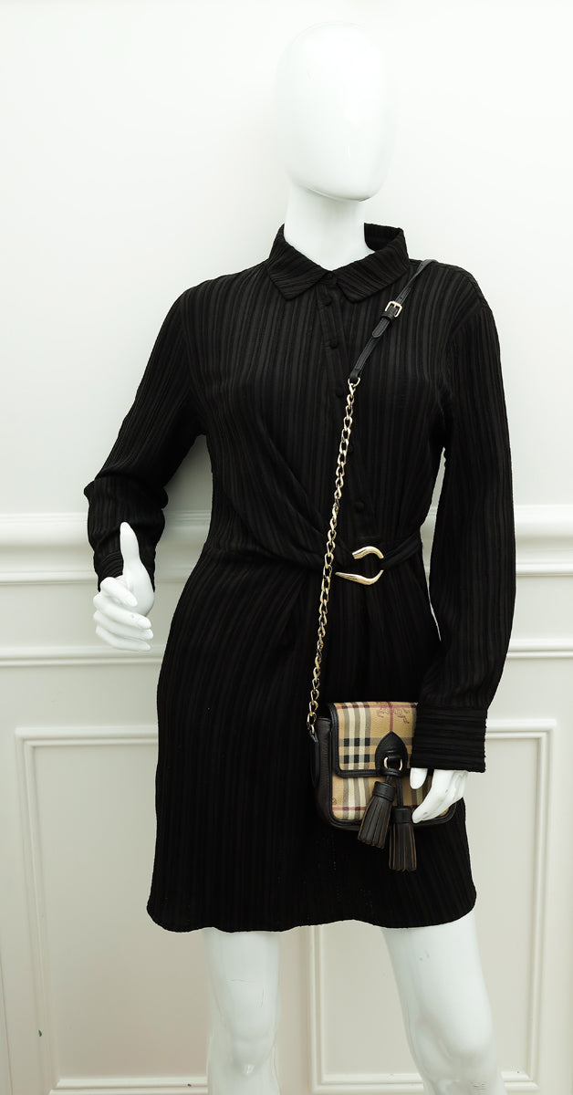 Burberry Bicolor Haymarket Check Tassel Mini Chain Crossbody Bag
