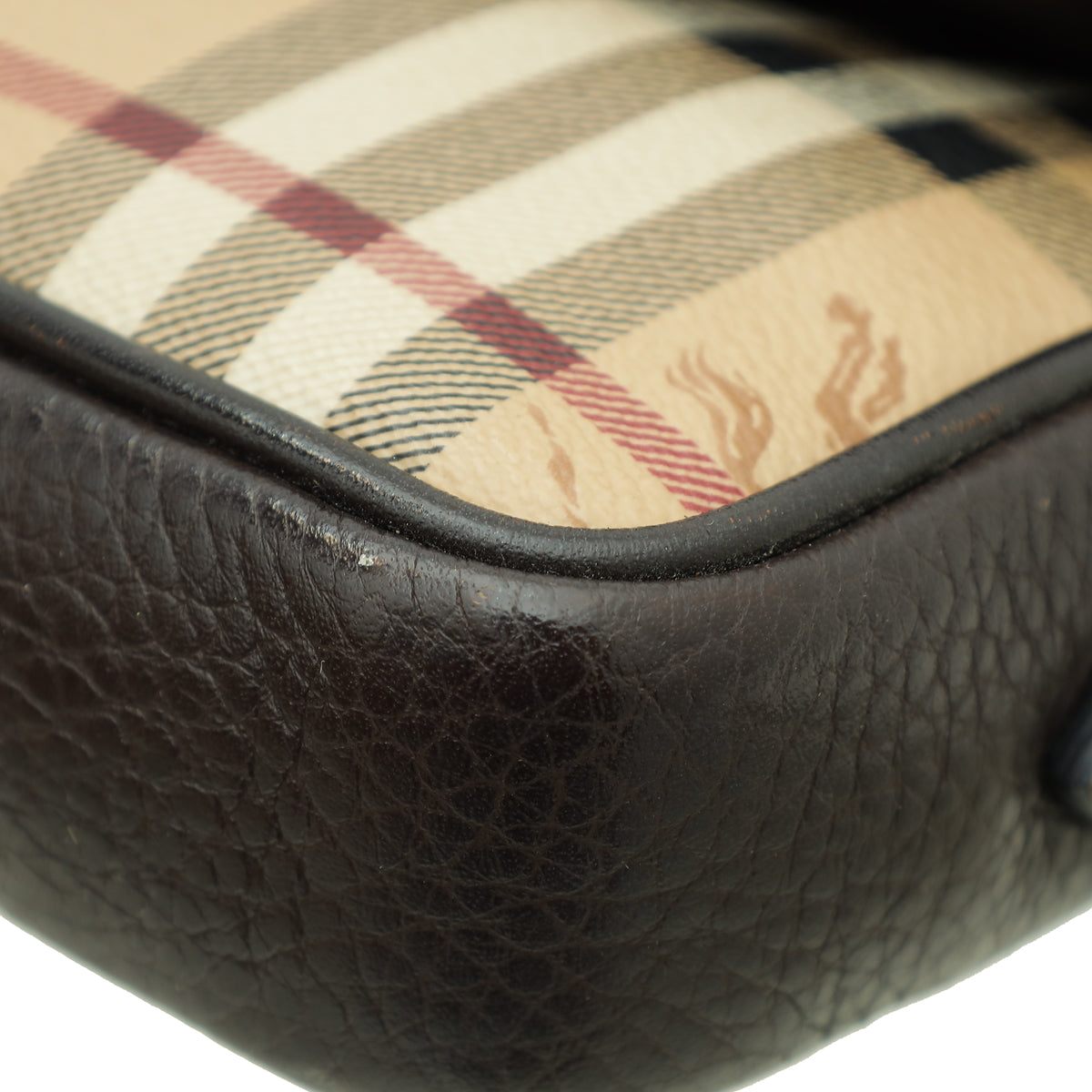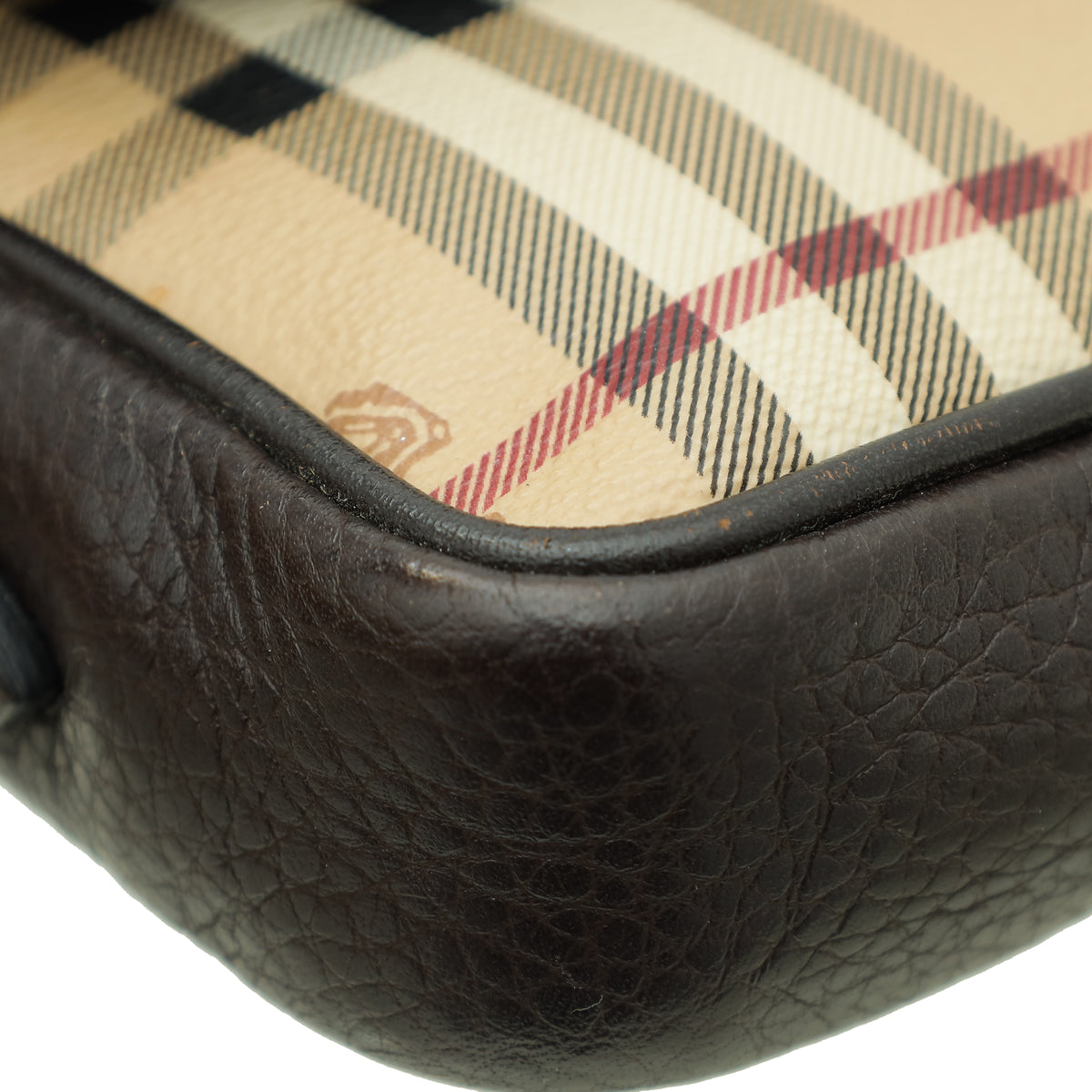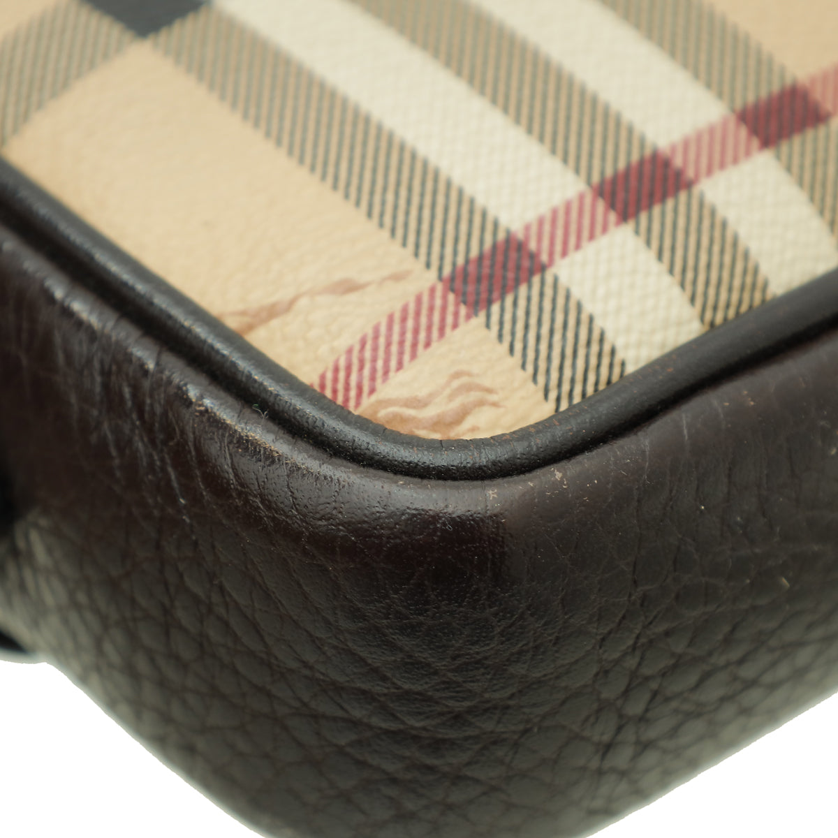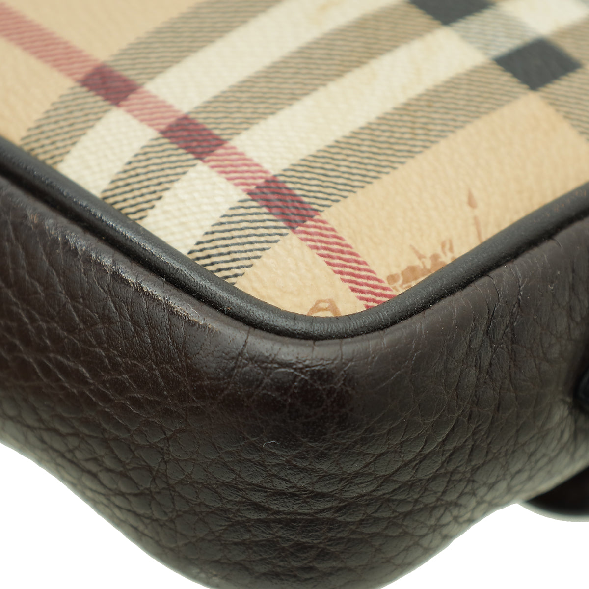 Material: Beige Haymarket Check Coated Canvas with Chocolate Leather Trim