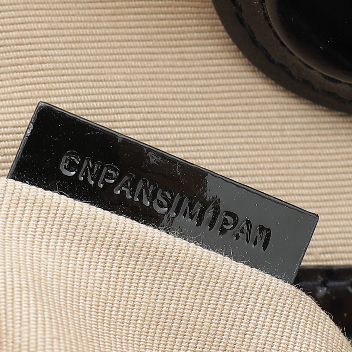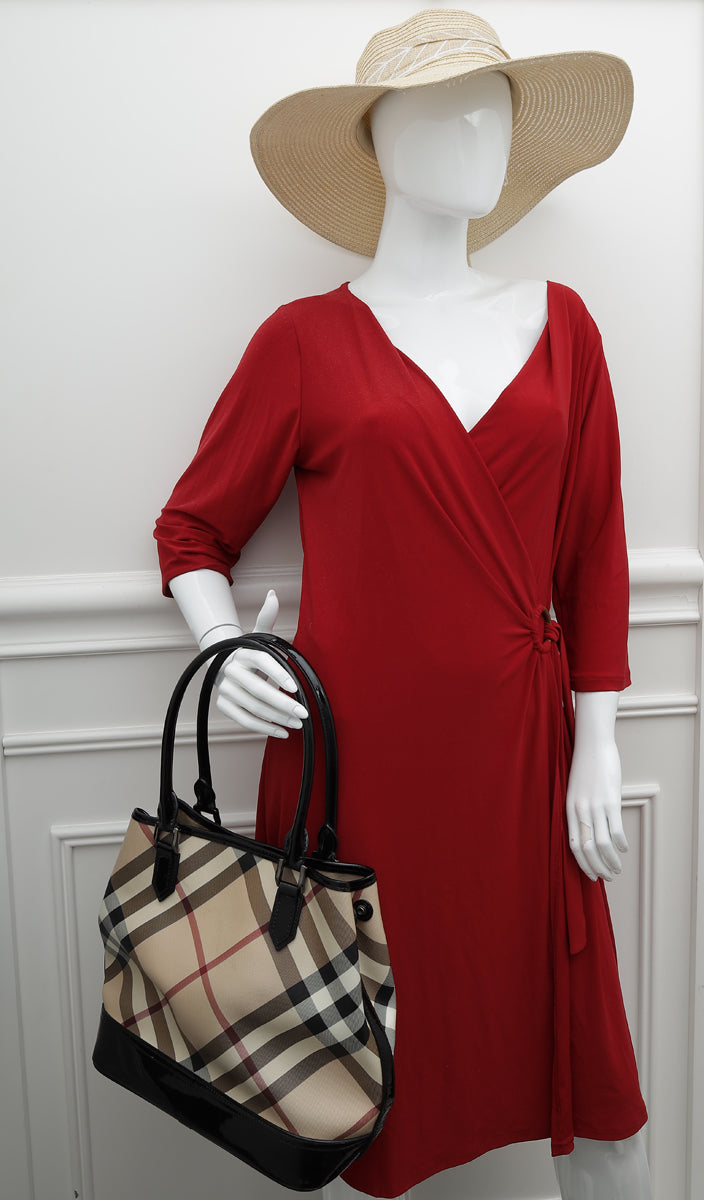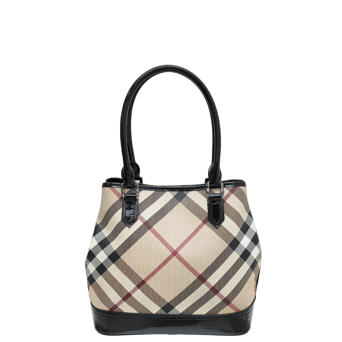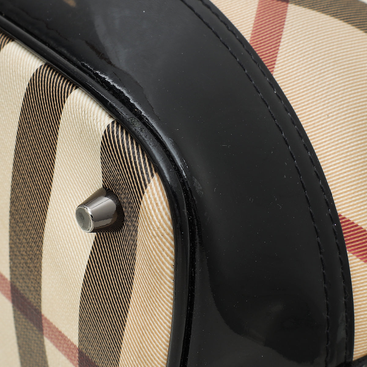 Material: Nova Check Canvas with Black Patent Leather Trim