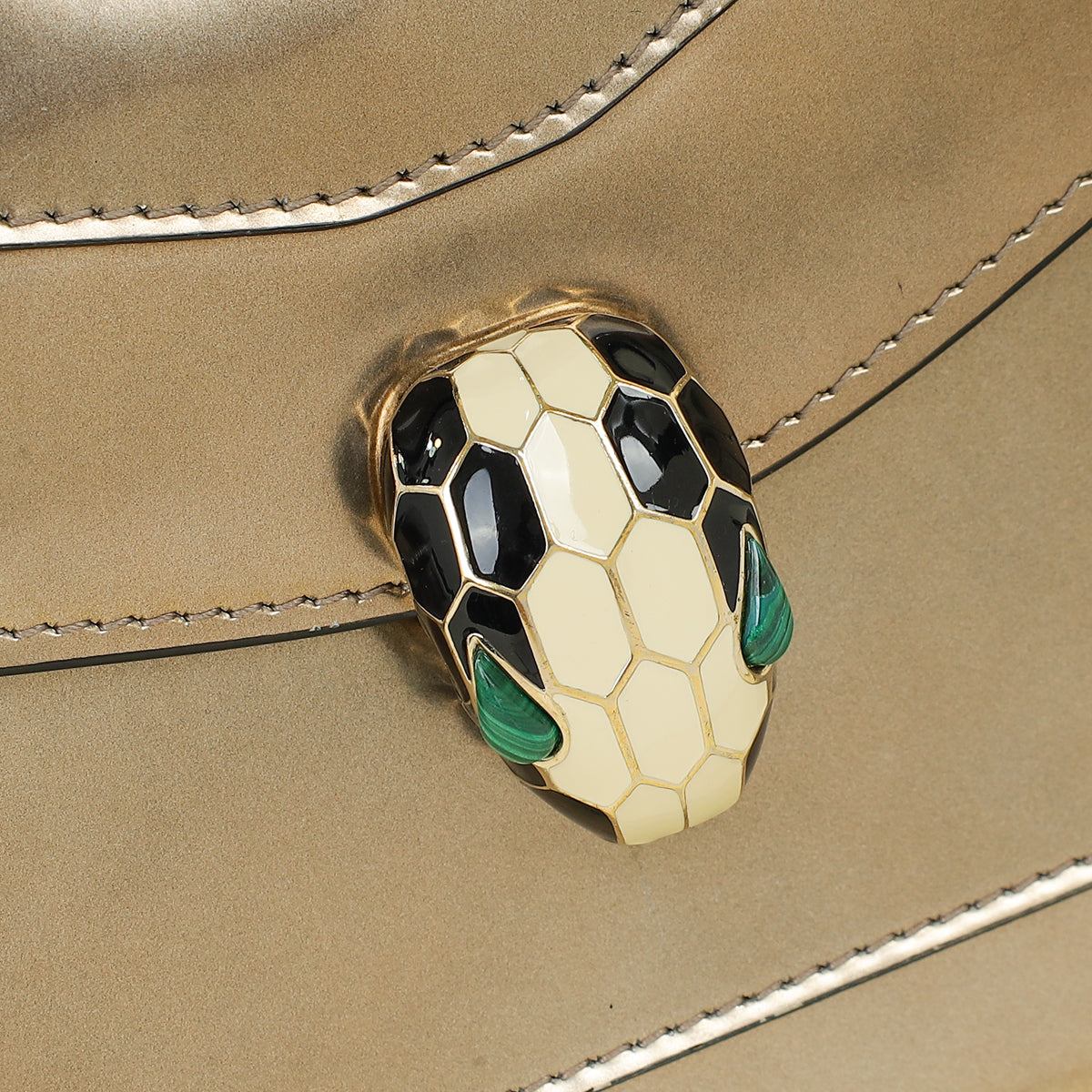 - Material: Metallic Calf Leather with Black and White Enamel with Eyes in Green Malachite