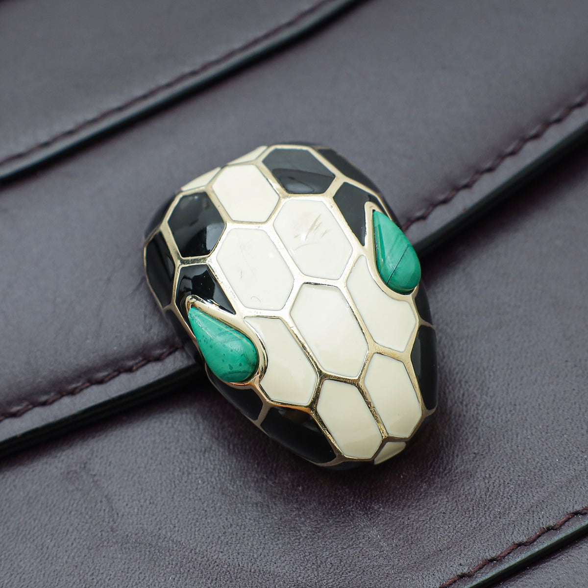 Material: Burgundy Smooth Calfskin Leather with Black/White Enamel and Eyes in Green Malachite
