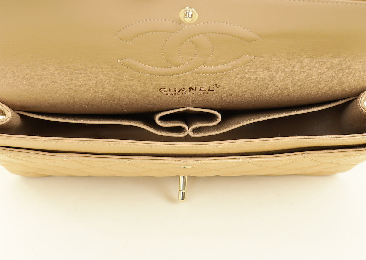 Chanel Beige CC Vintage Classic Double Flap Medium Bag