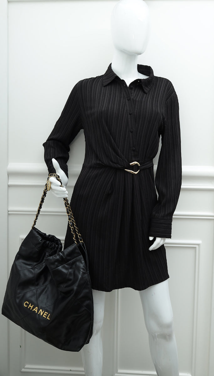 Chanel Black 22 Small Shiny Hobo Bag