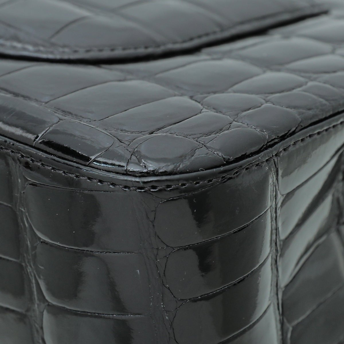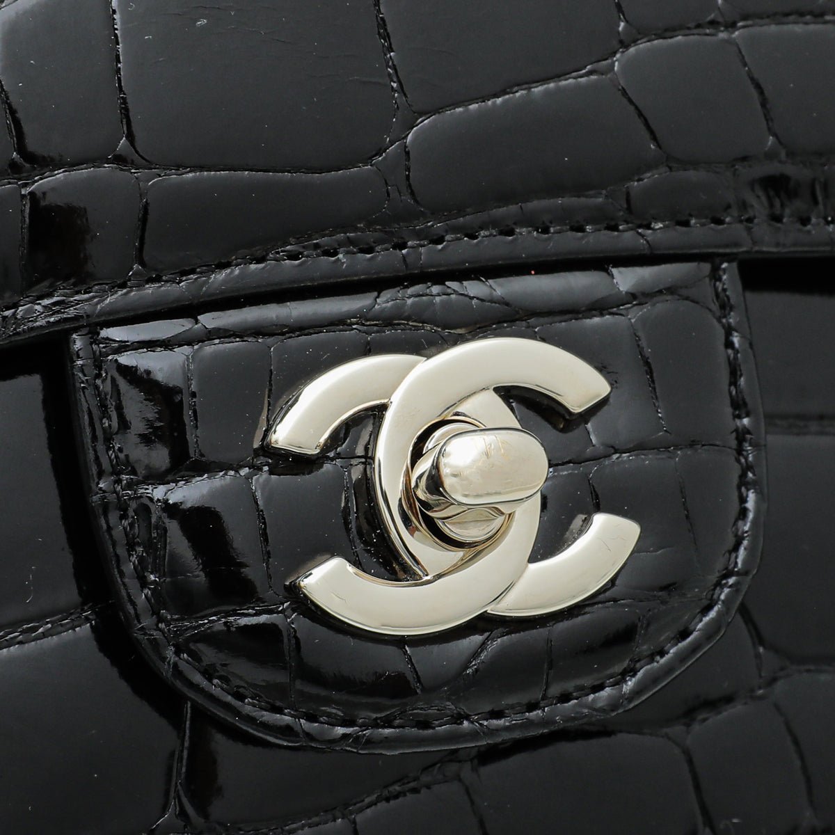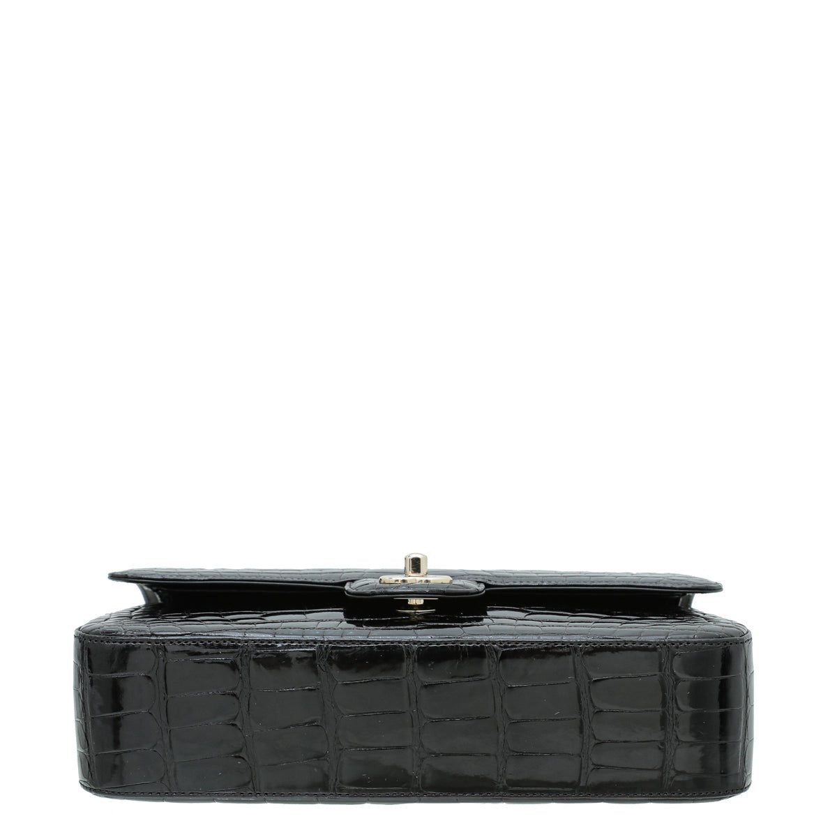 Chanel Black CC Alligator Classic Double Flap Medium Bag