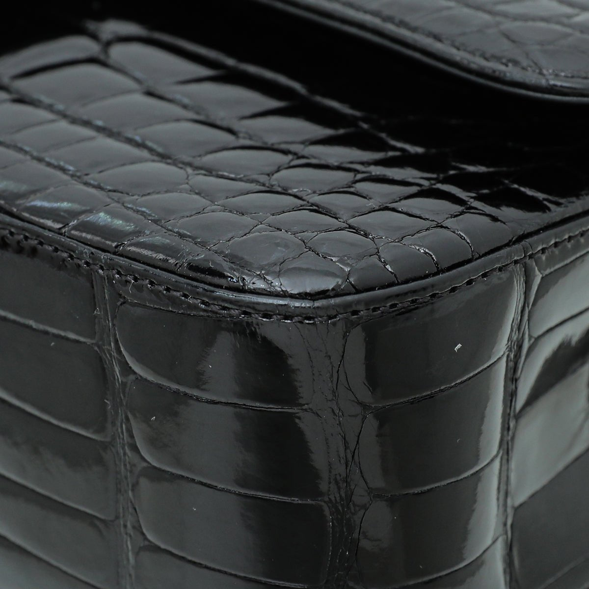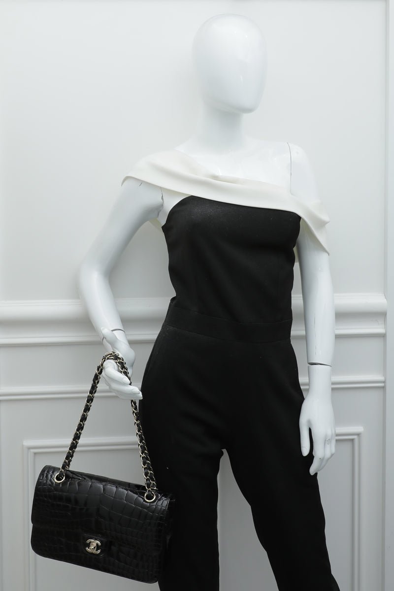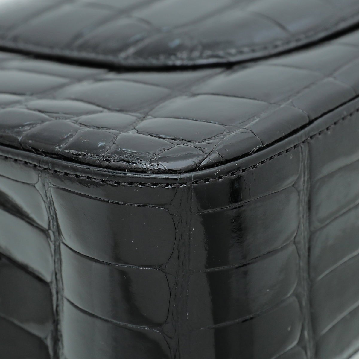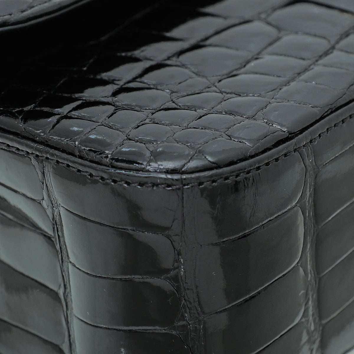 Chanel Black CC Alligator Classic Double Flap Medium Bag