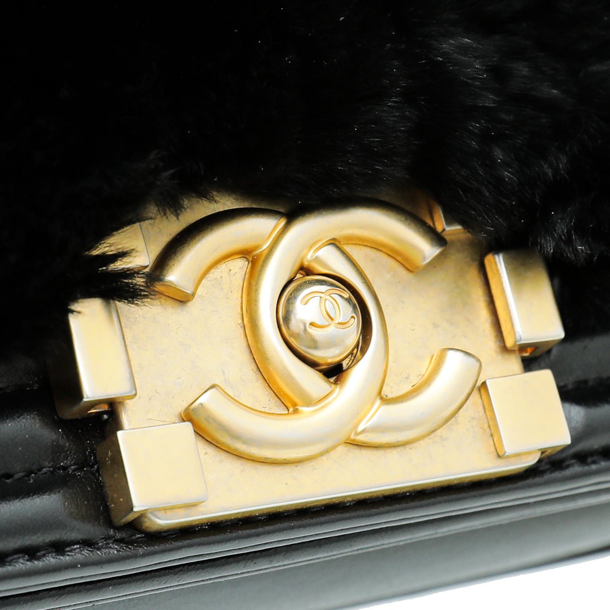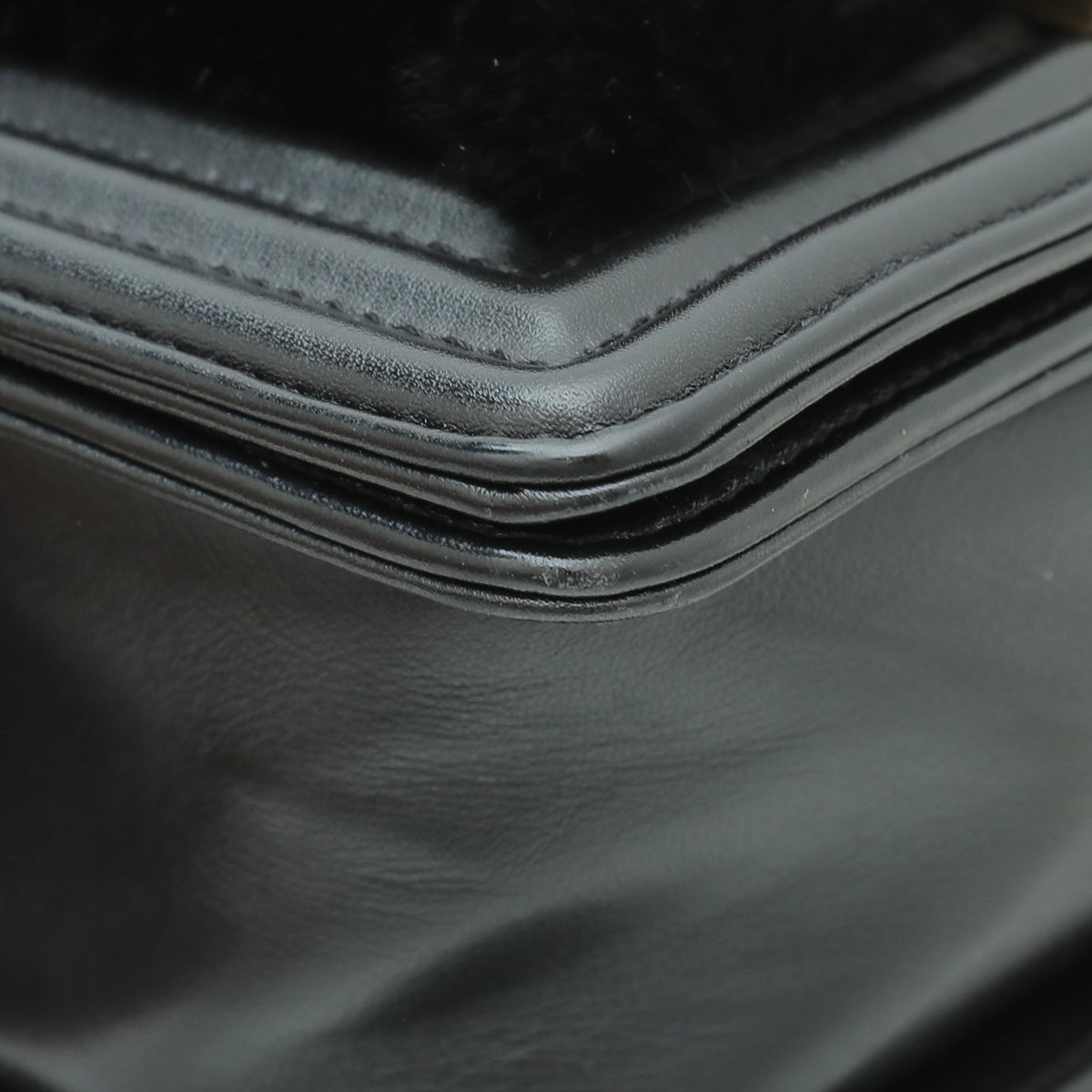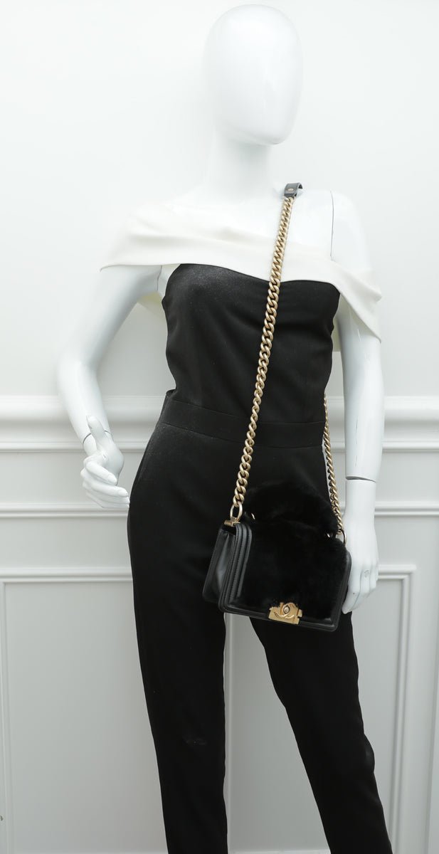 Chanel Black CC Boy Flap Orylag Rabbit Fur Small Bag