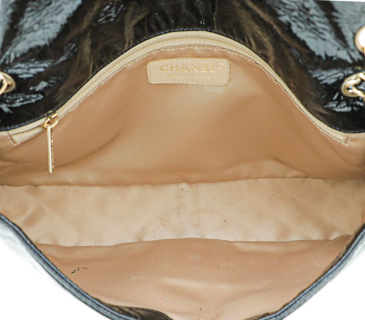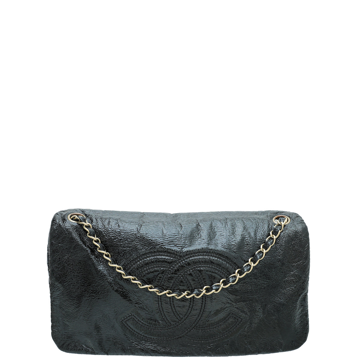 Chanel Black Vinyl Rock & Chain Medium Flap Bag