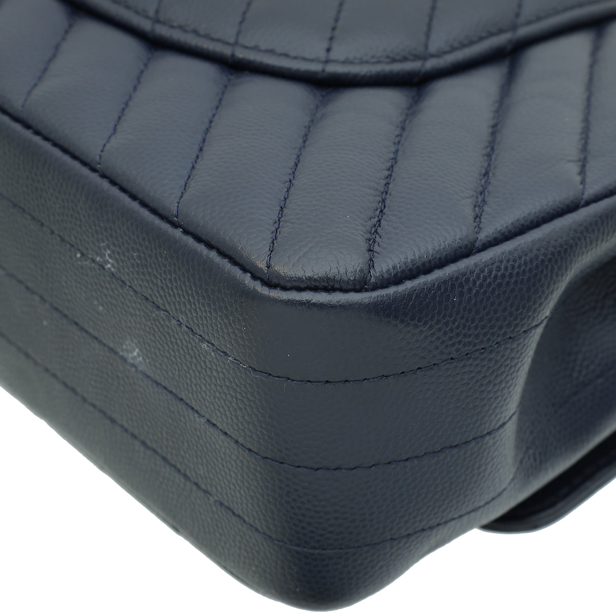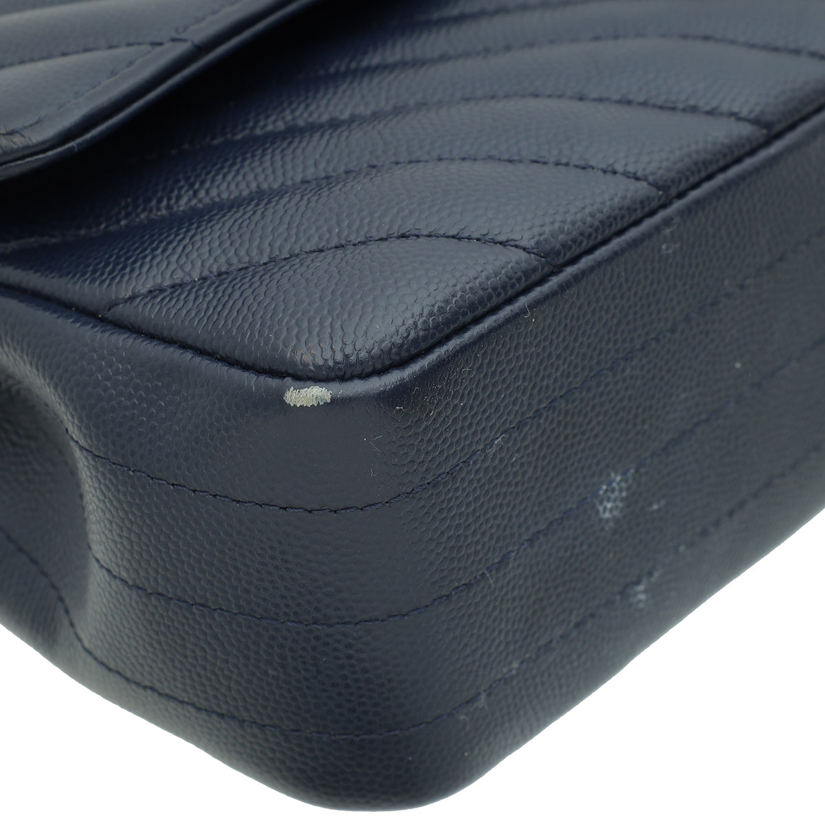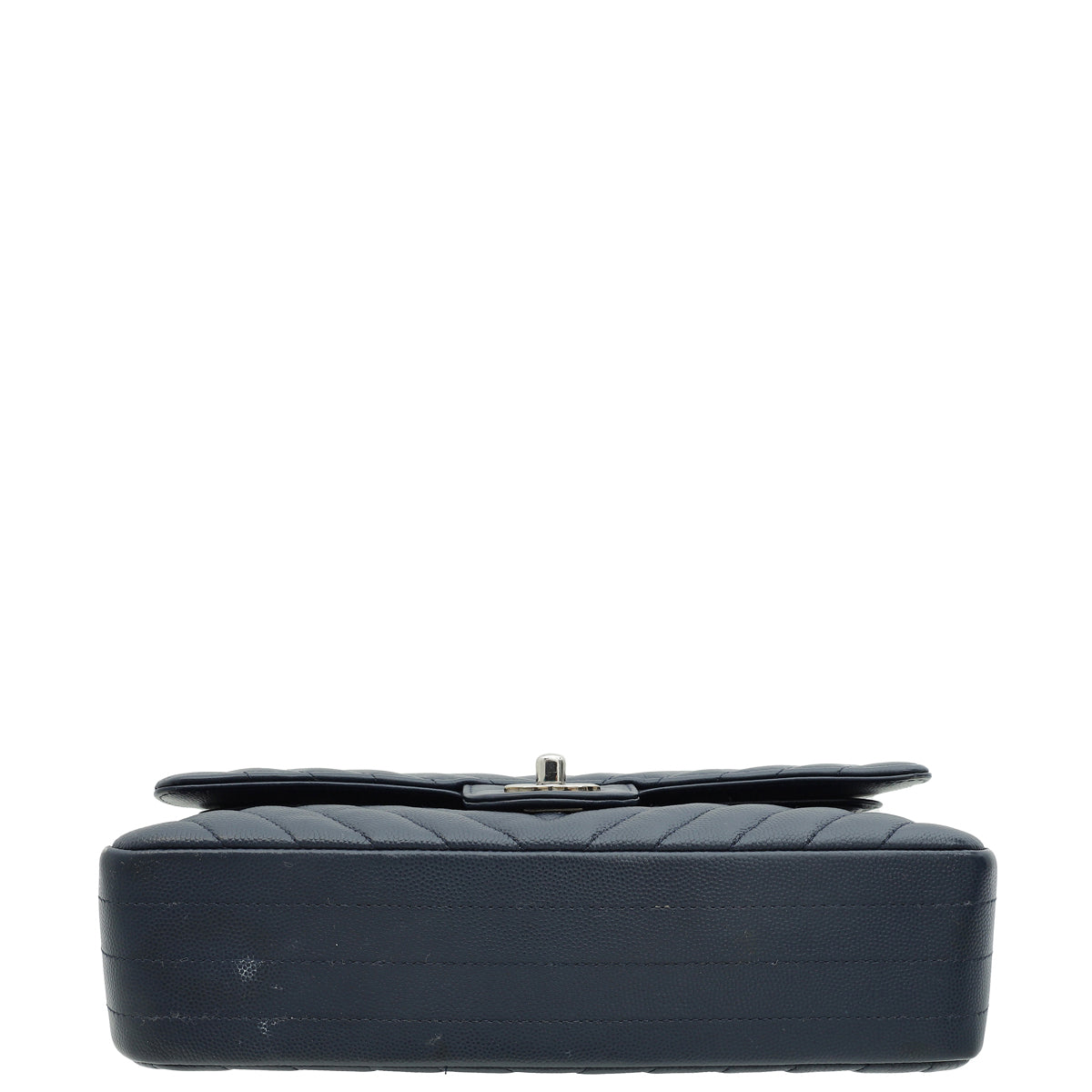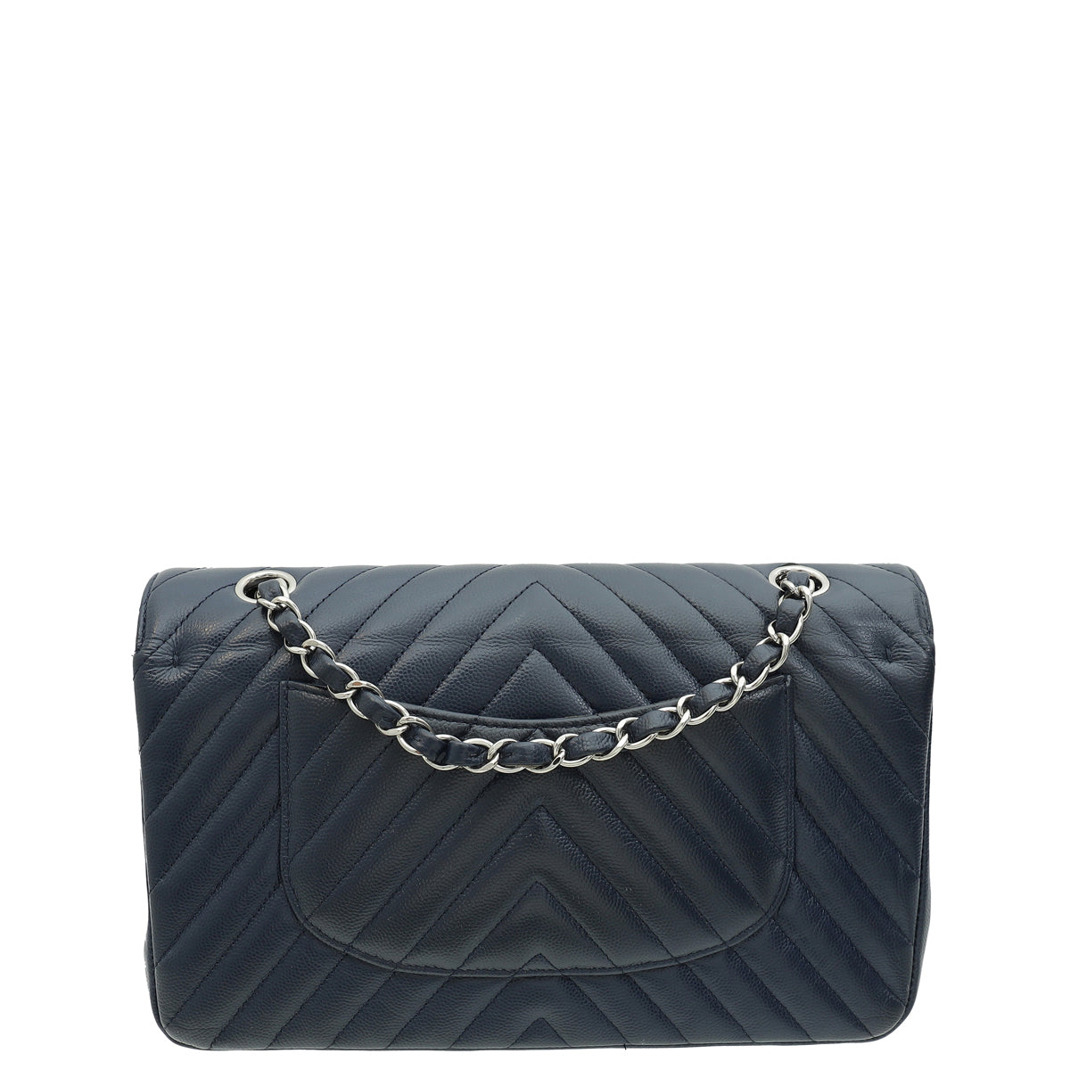Chanel Navy Blue CC Classic Chevron Double Flap Medium Bag