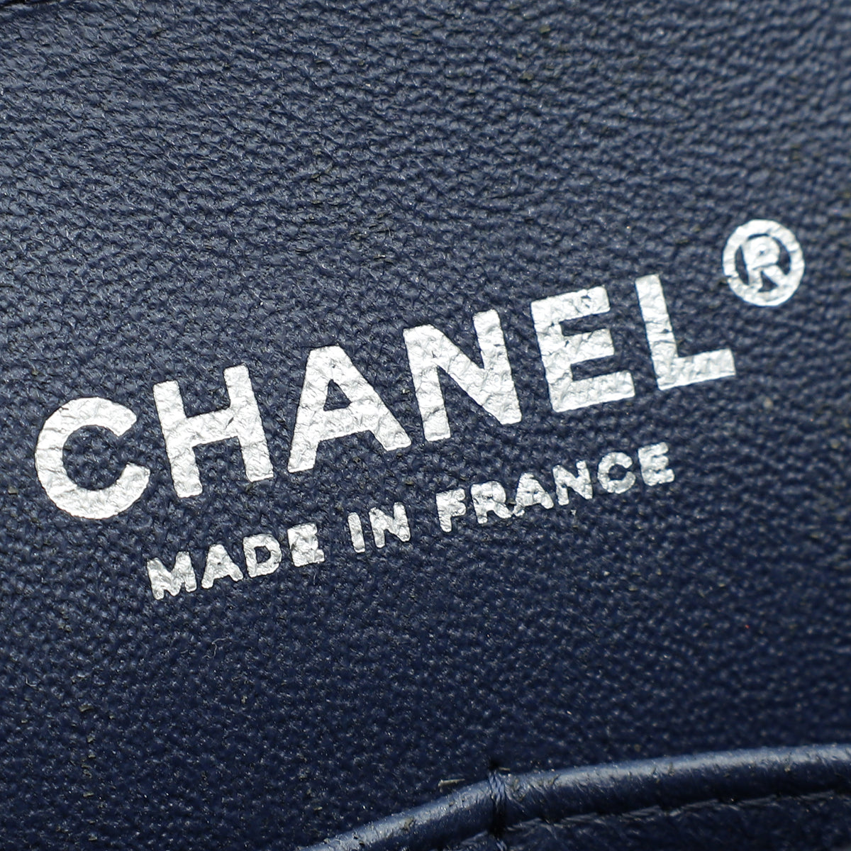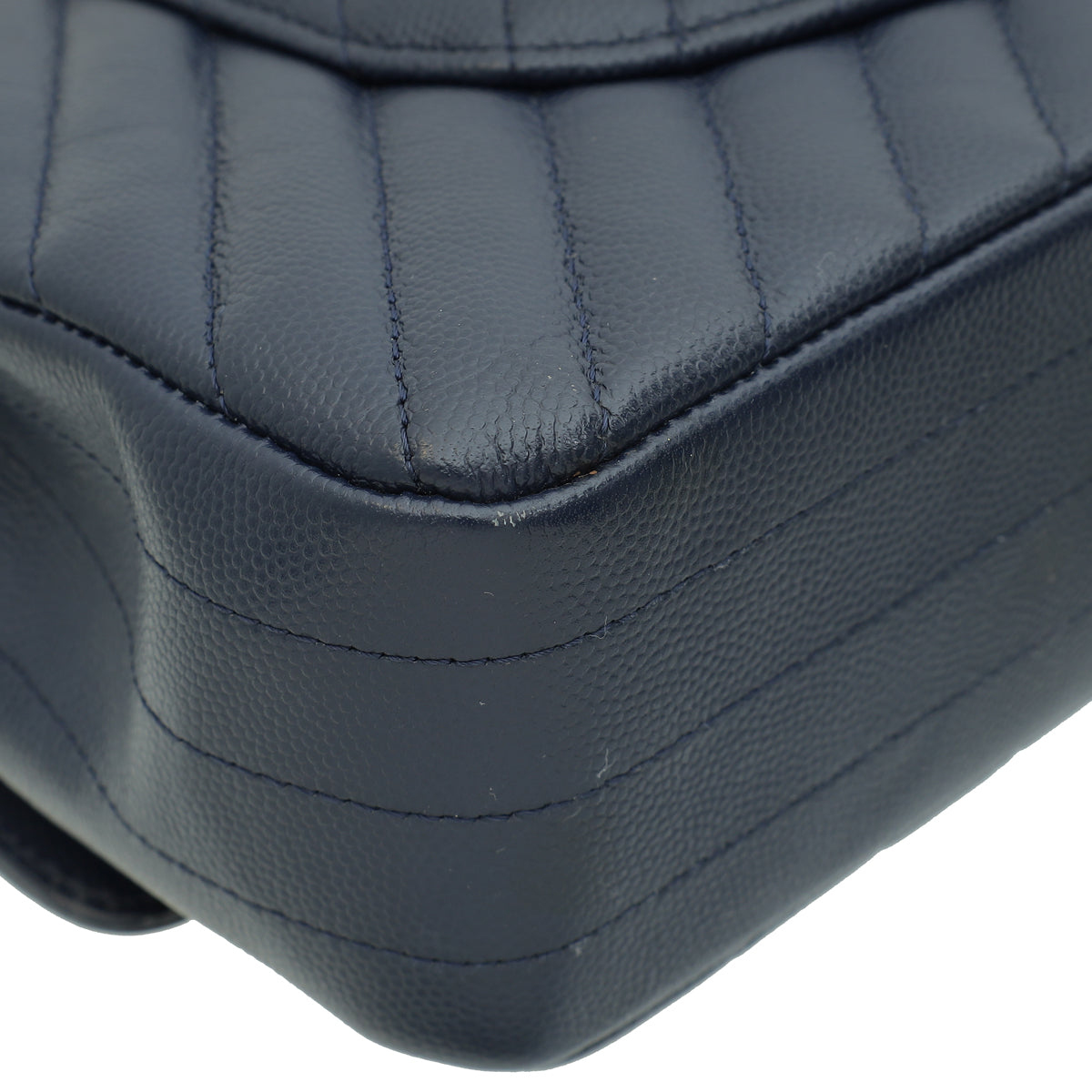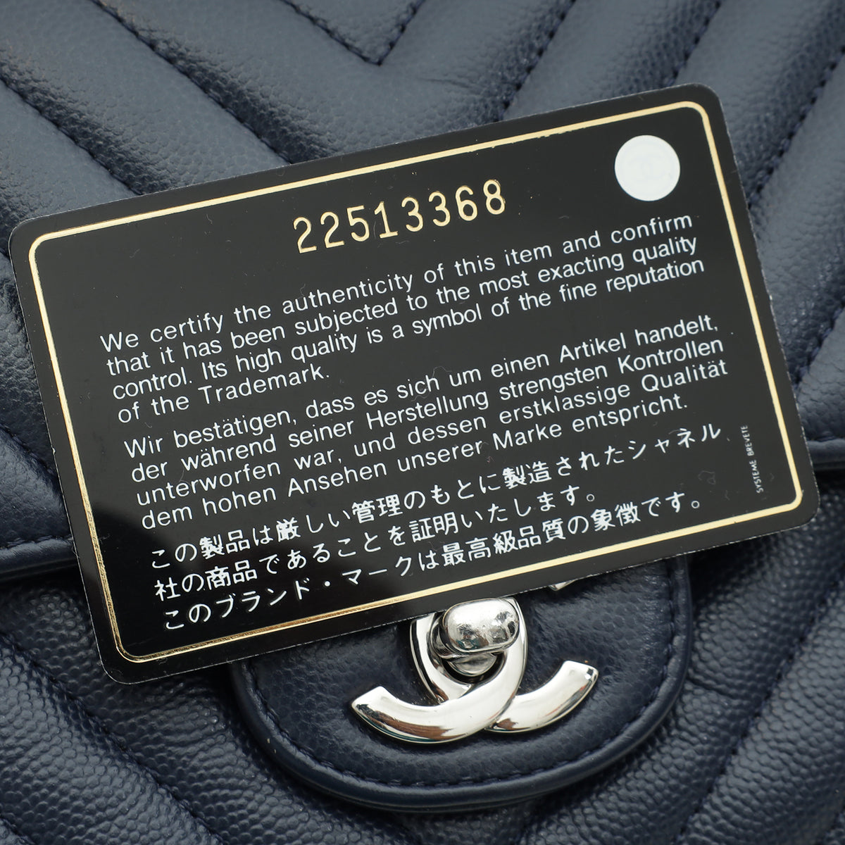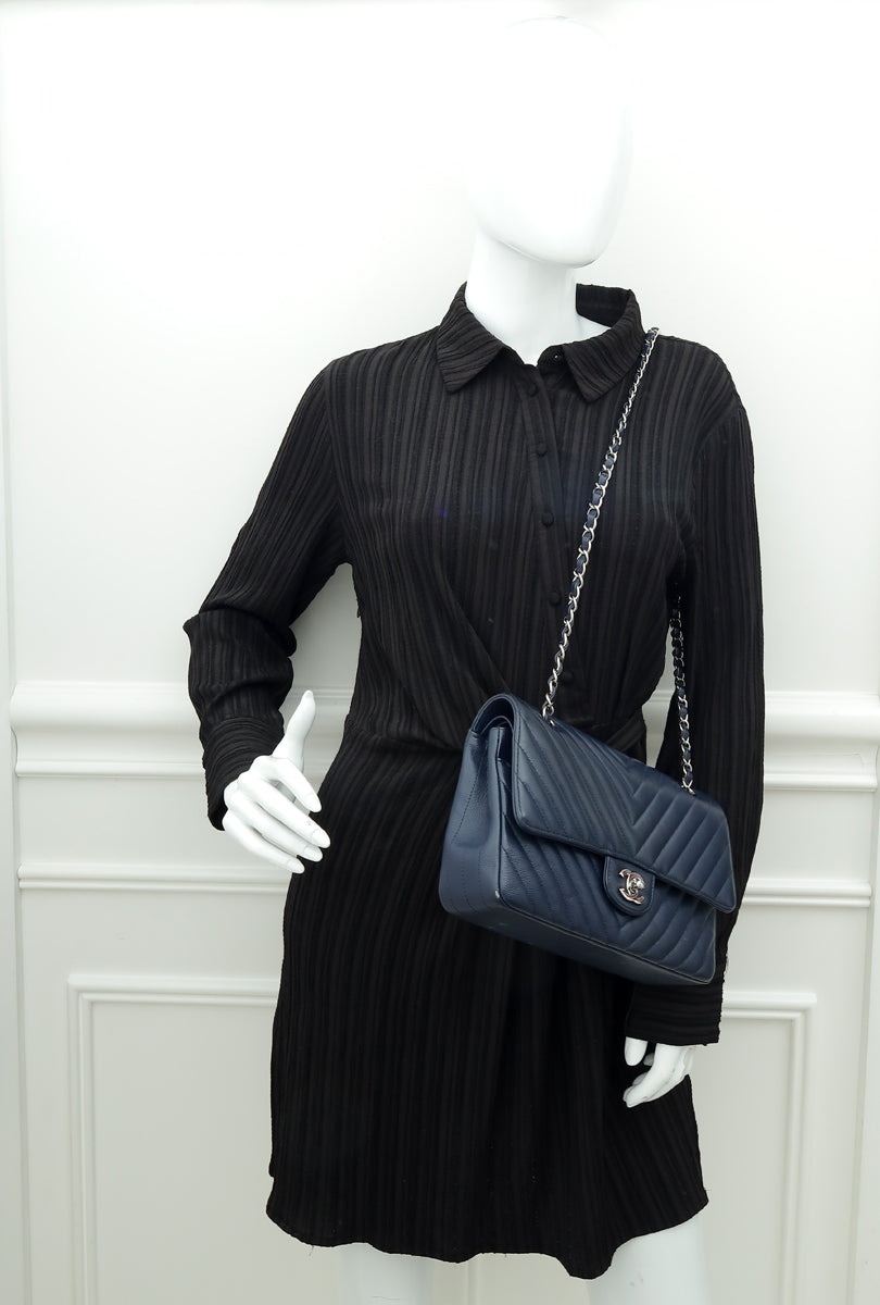 Chanel Navy Blue CC Classic Chevron Double Flap Medium Bag
