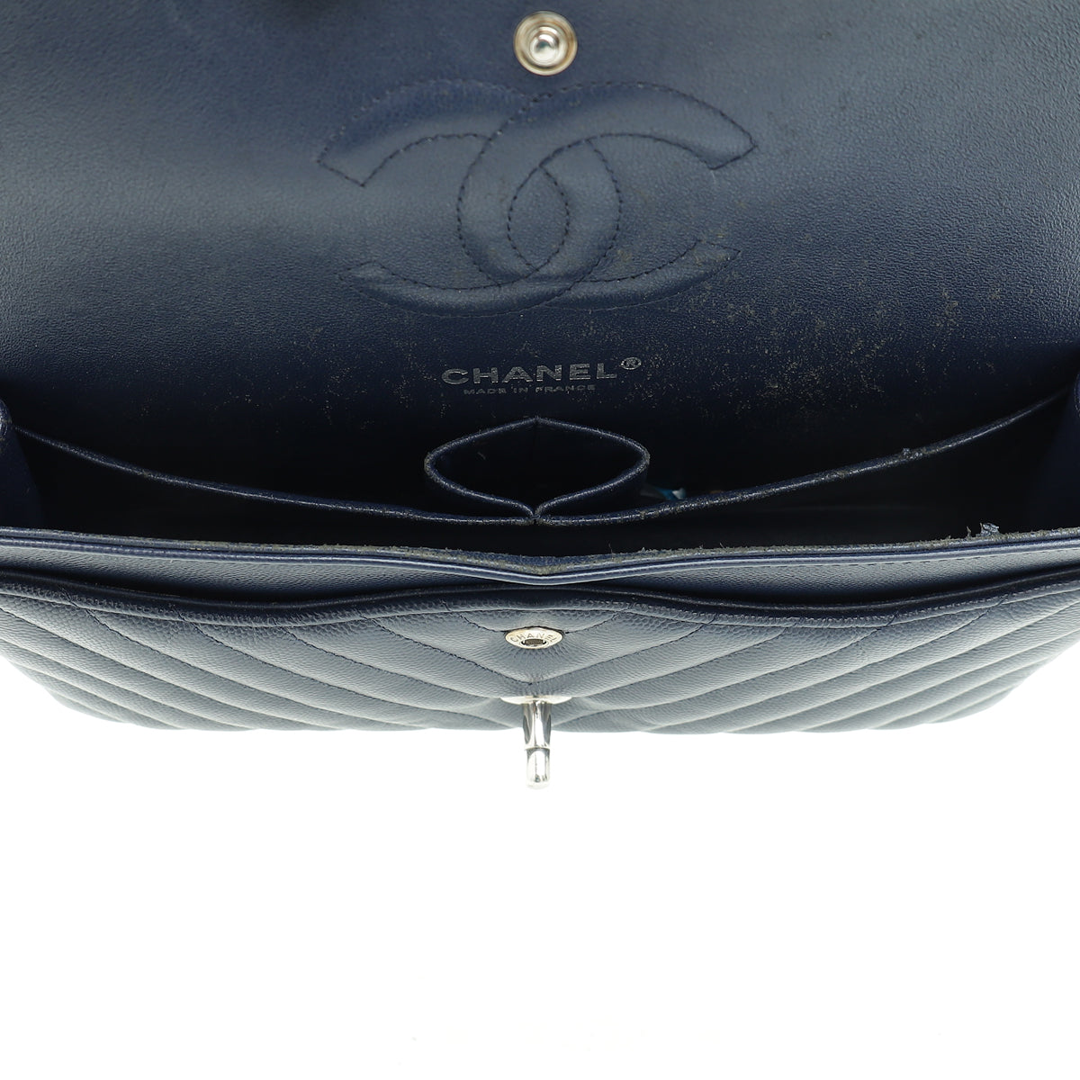 Chanel Navy Blue CC Classic Chevron Double Flap Medium Bag-Chanel-THE CLOSET