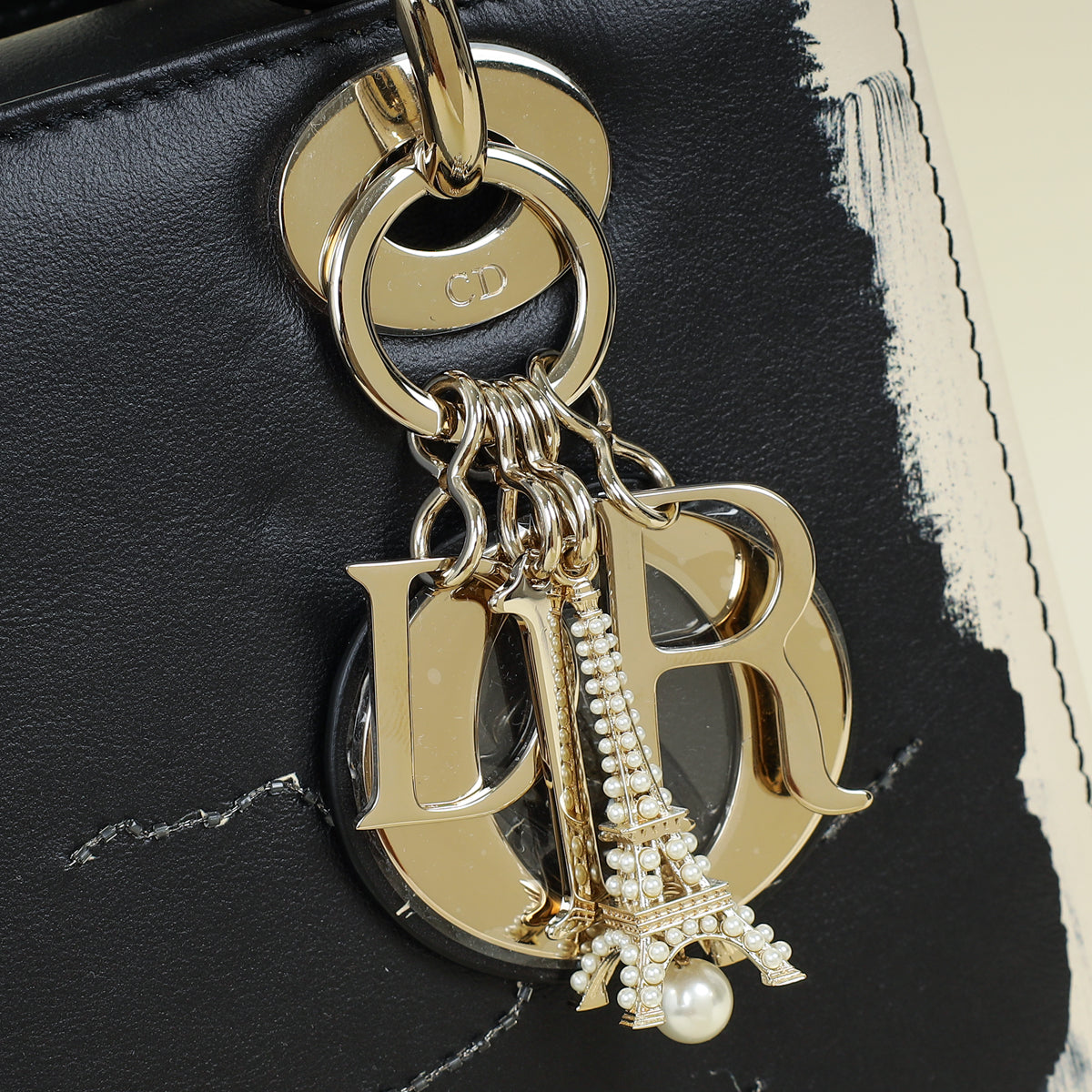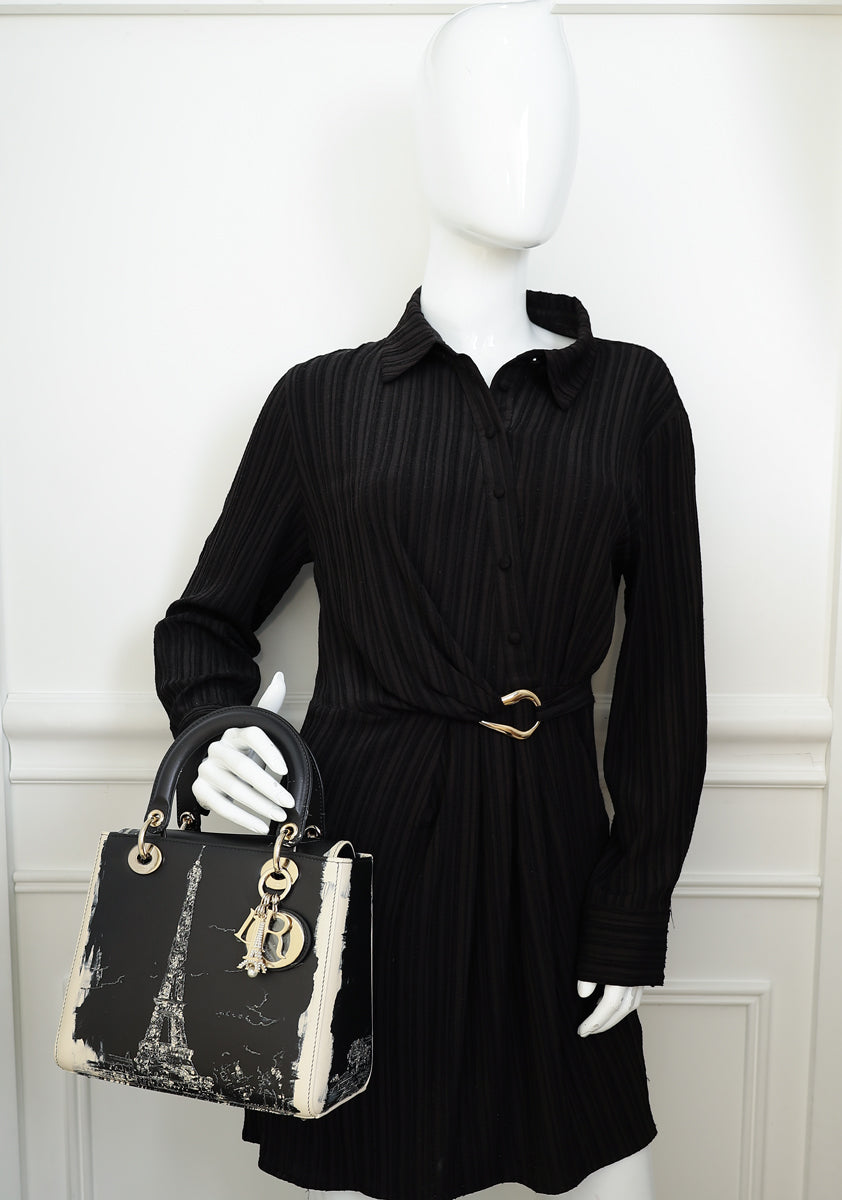 Christian Dior Bicolor Lady Dior Paris Print and Rhinestone Embroidery Medium Bag