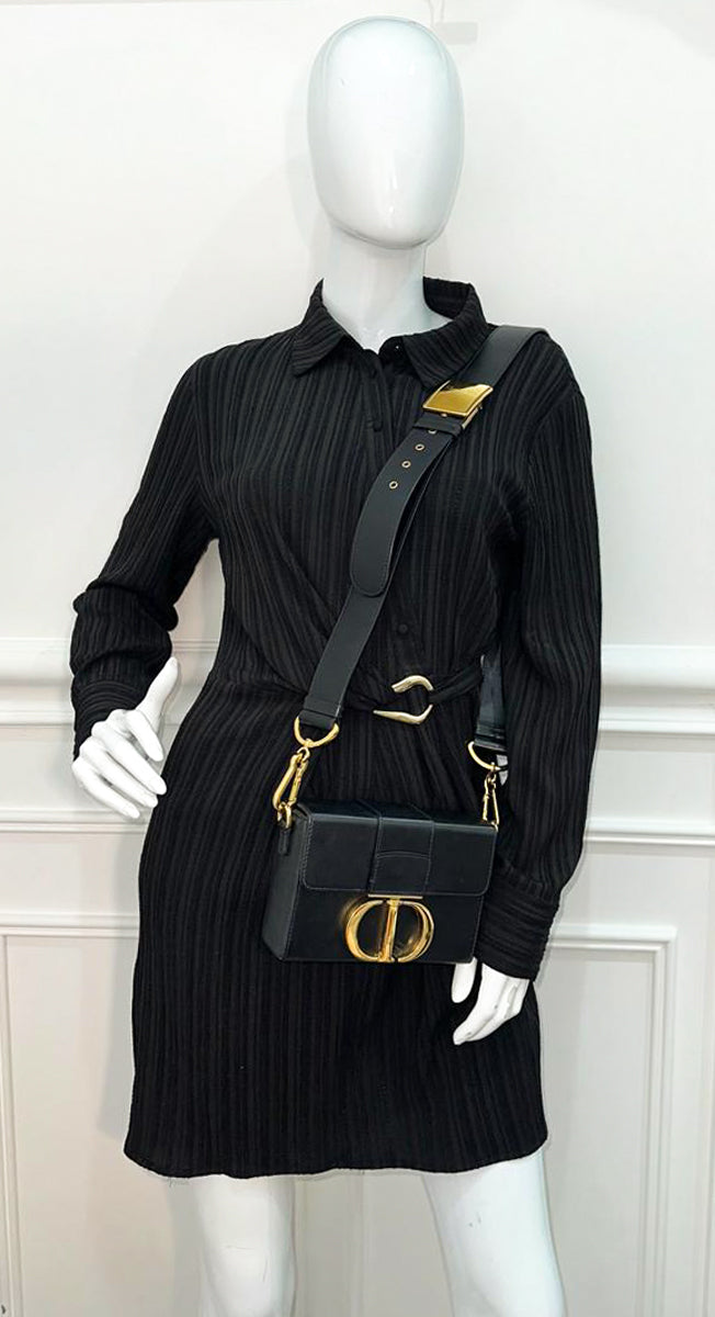 - Material: Black Smooth Calfskin Leather with CD Clasp and Embossed '30 Montaigne' Signature on The Back