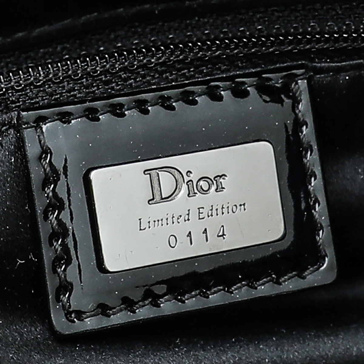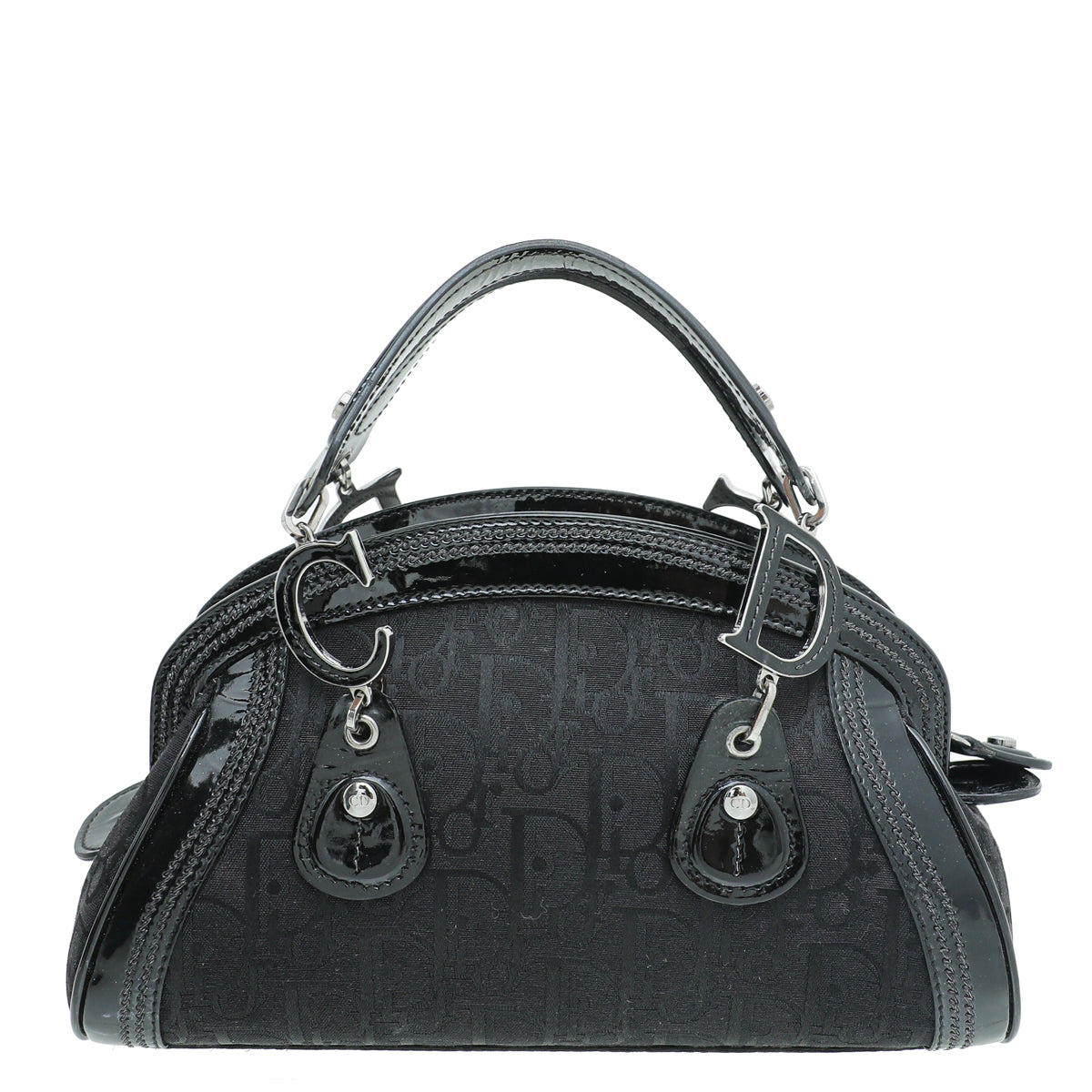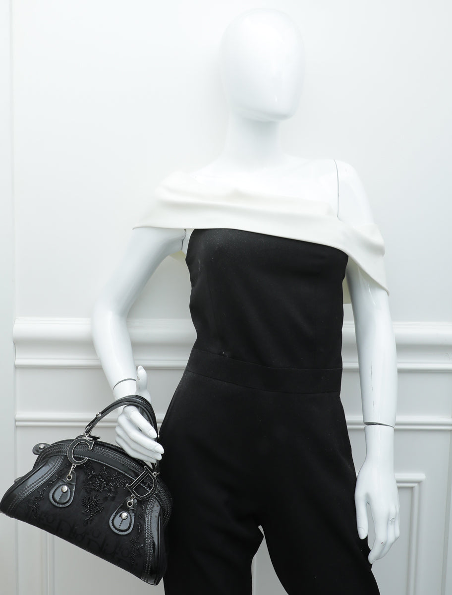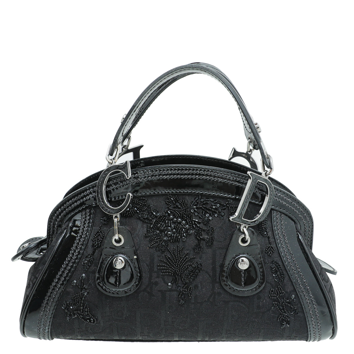 Christian Dior Black Oblique Diorissimo Embroidered Flower Satchel Bag