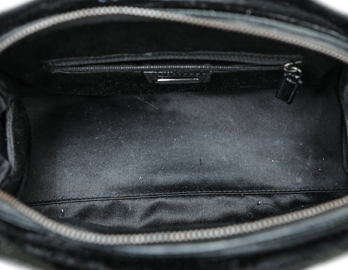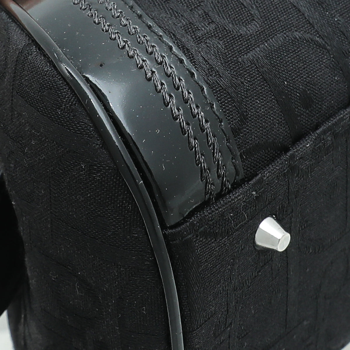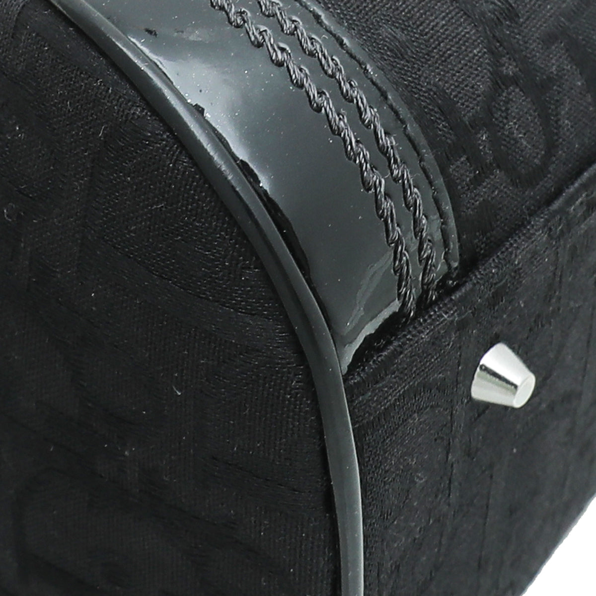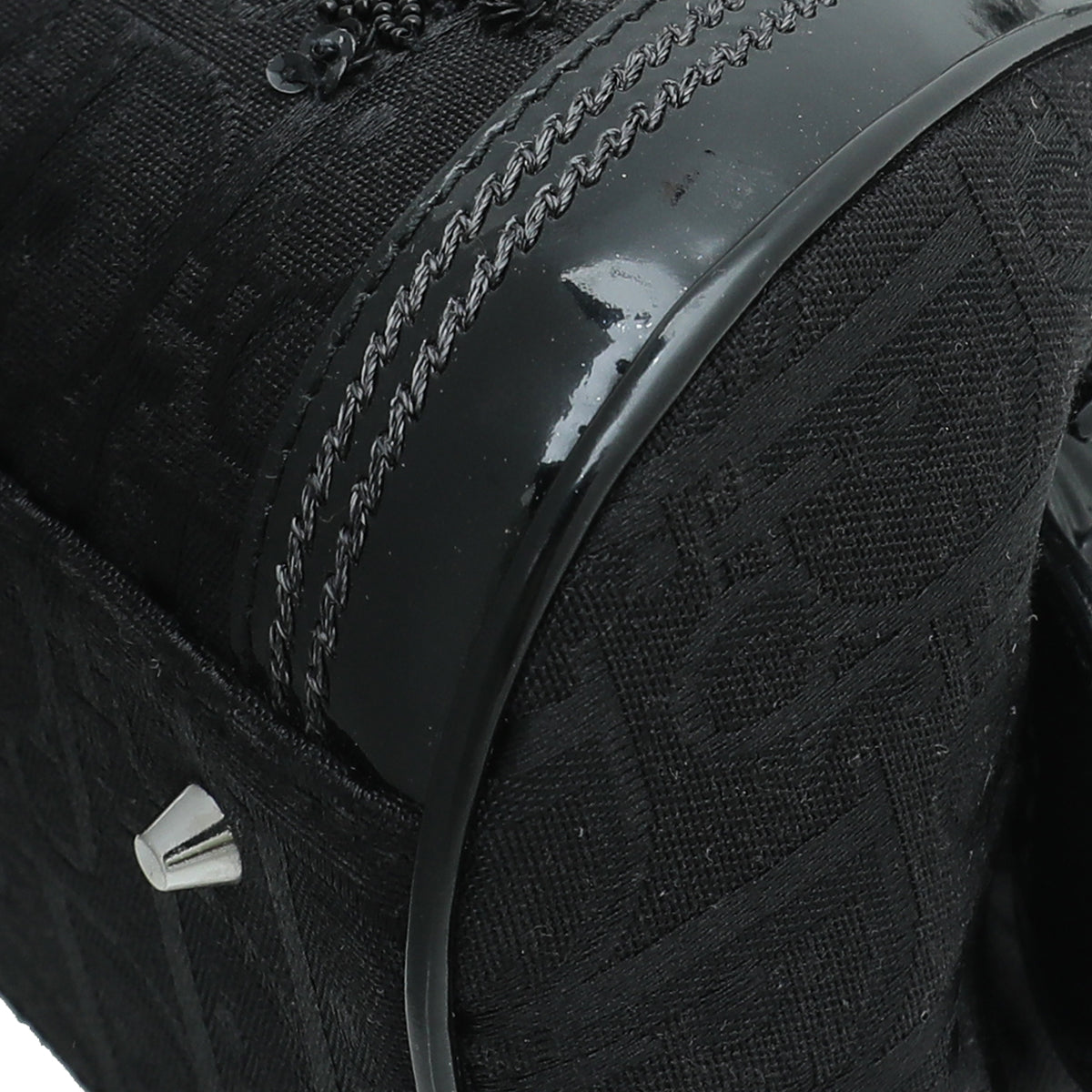 Material: Black Oblique Canvas with Embroidered Flower and Sequins and Patent Leather Trim
