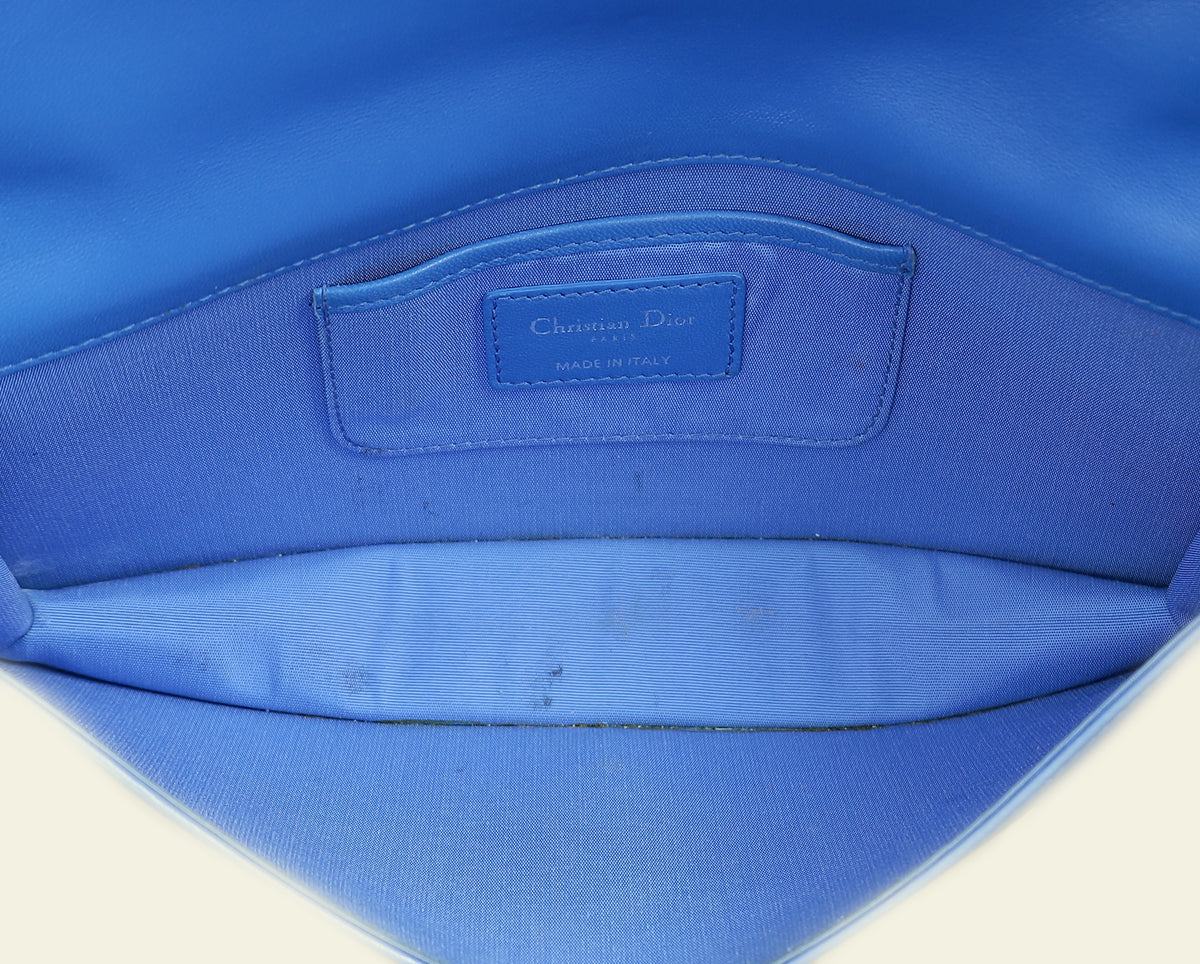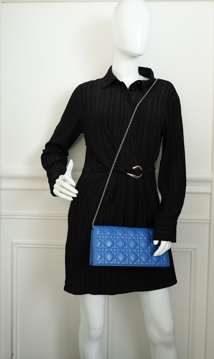 Christian Dior Blue Lady Dior Cannage Convertible Chain Clutch