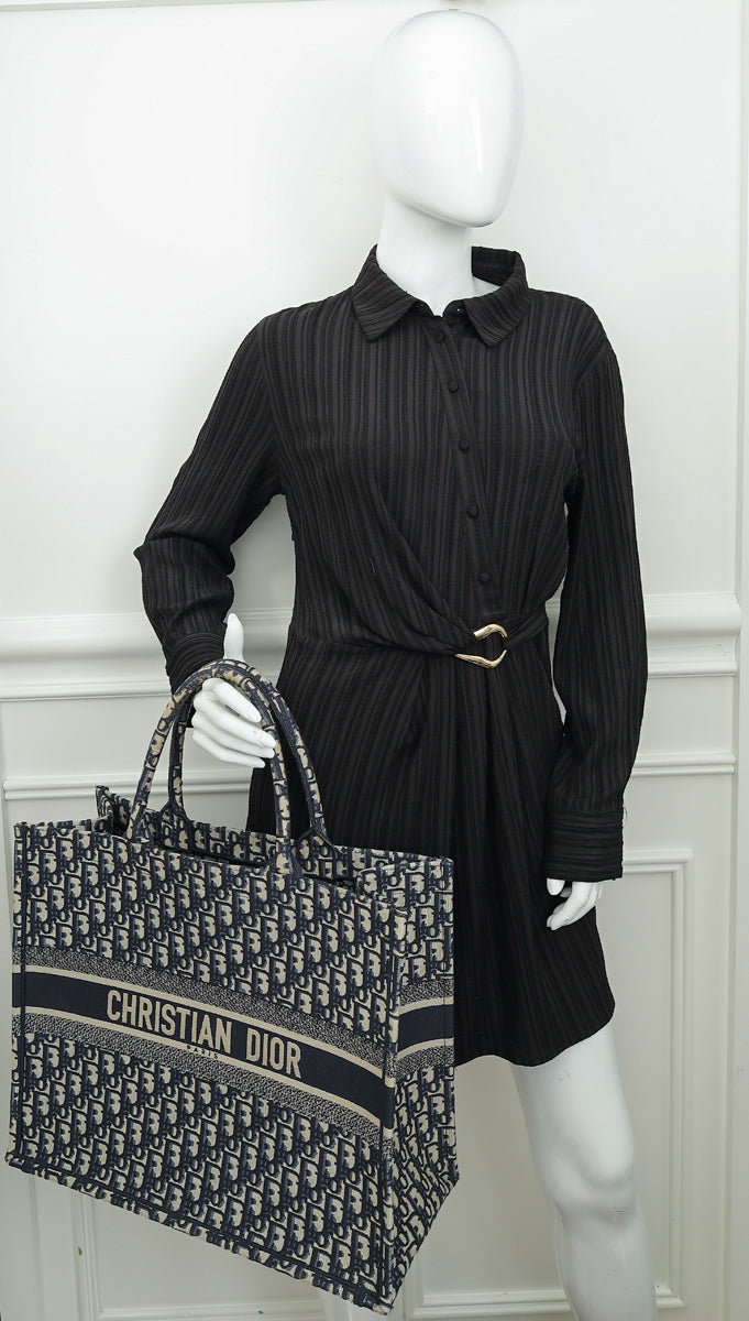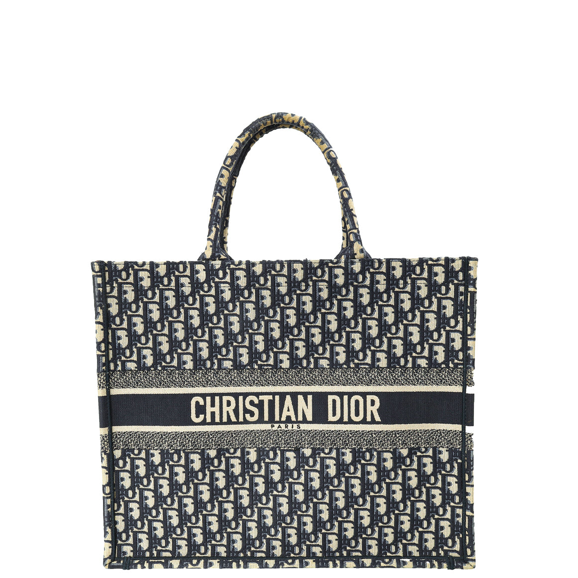 Christian Dior Blue Oblique Embroidered Book Tote Large Bag