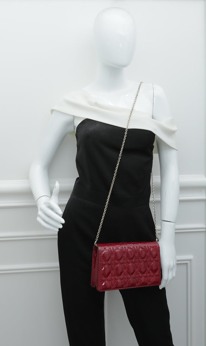 Christian Dior Cherry Red Lady Dior Chain Pouch
