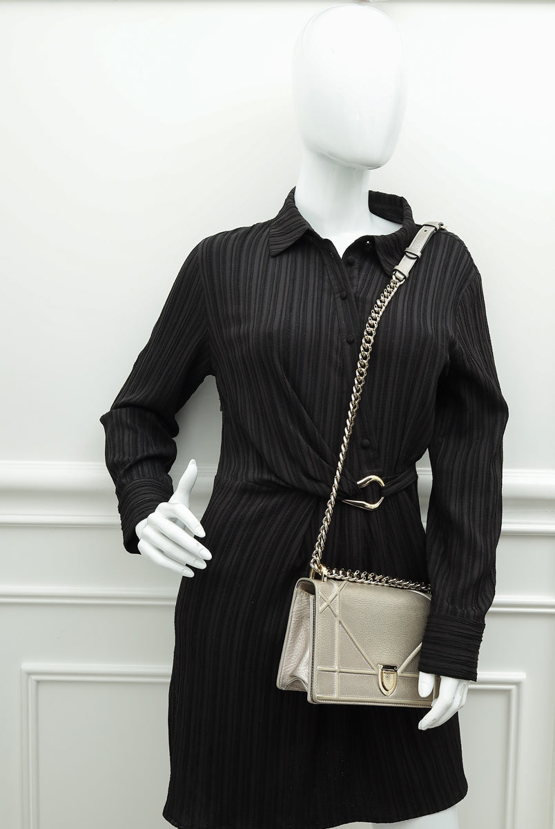 Christian Dior Metallic Champaign Diorama Shoulder Bag