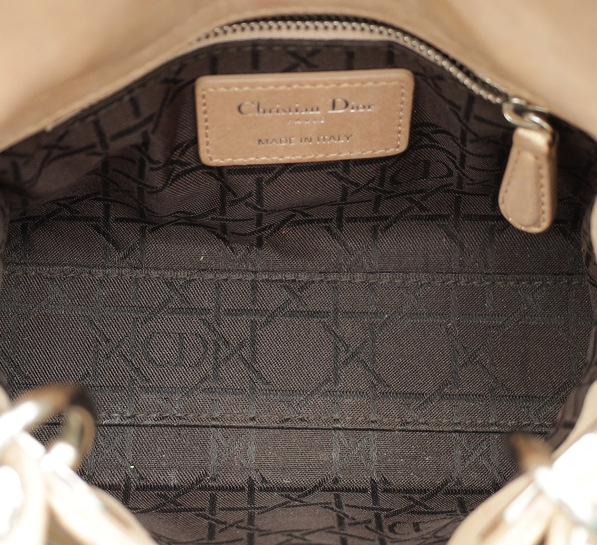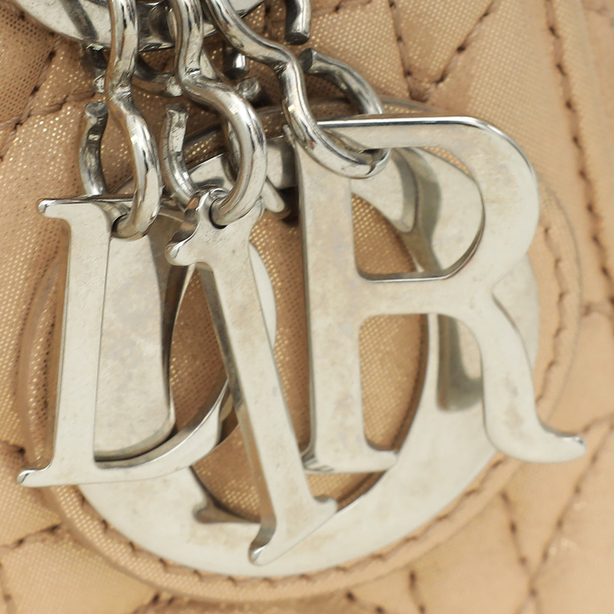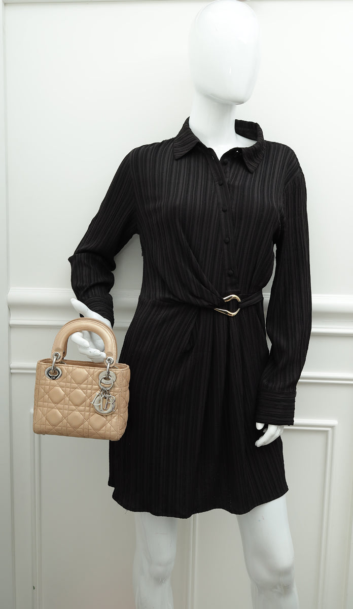 Christian Dior Metallic Nude Lady Dior Mini Shimmering Chain Bag