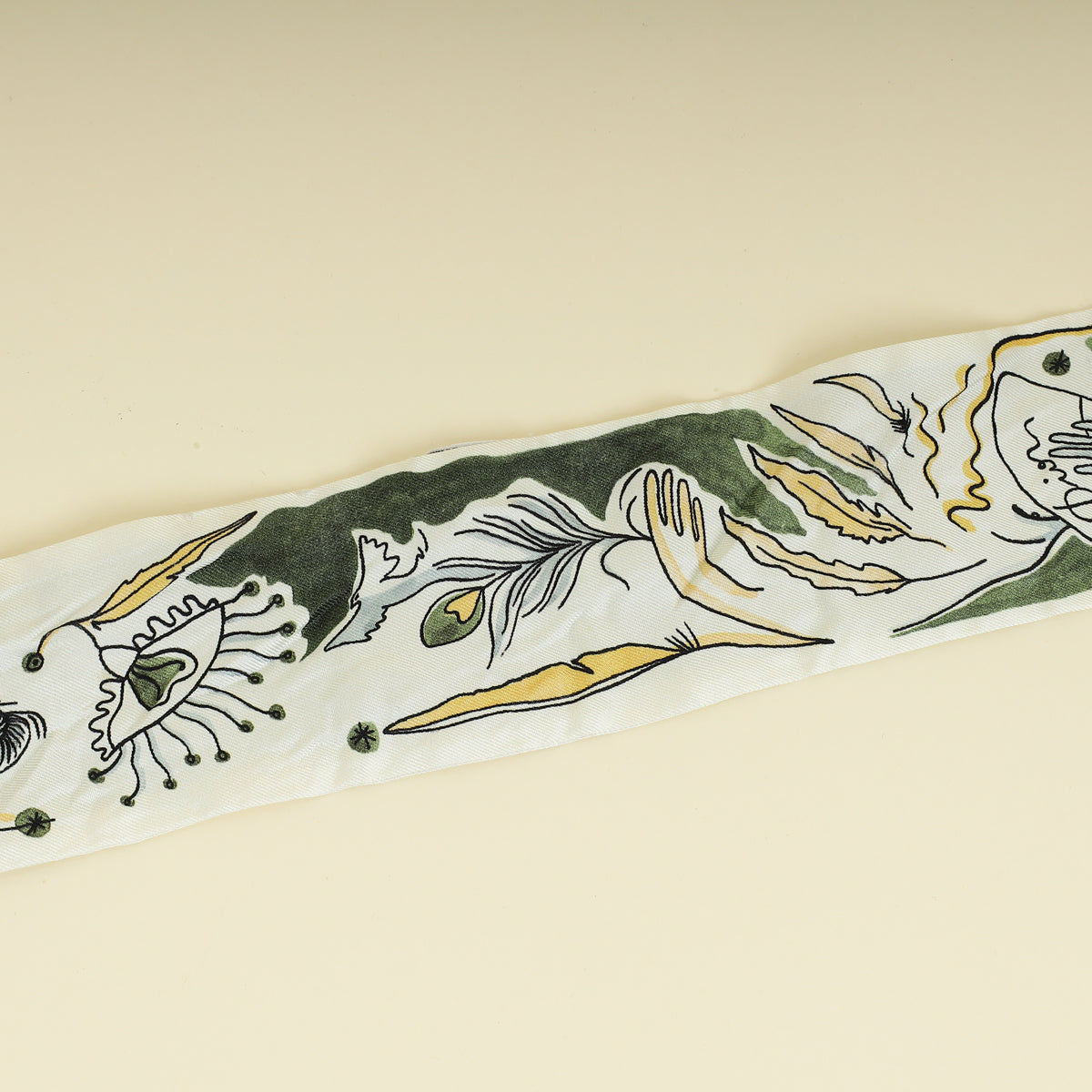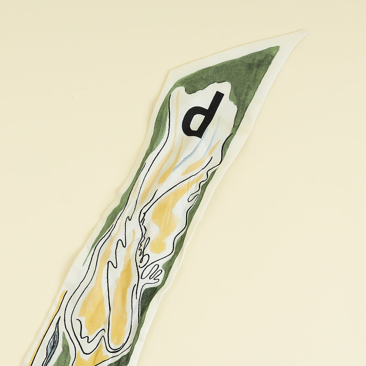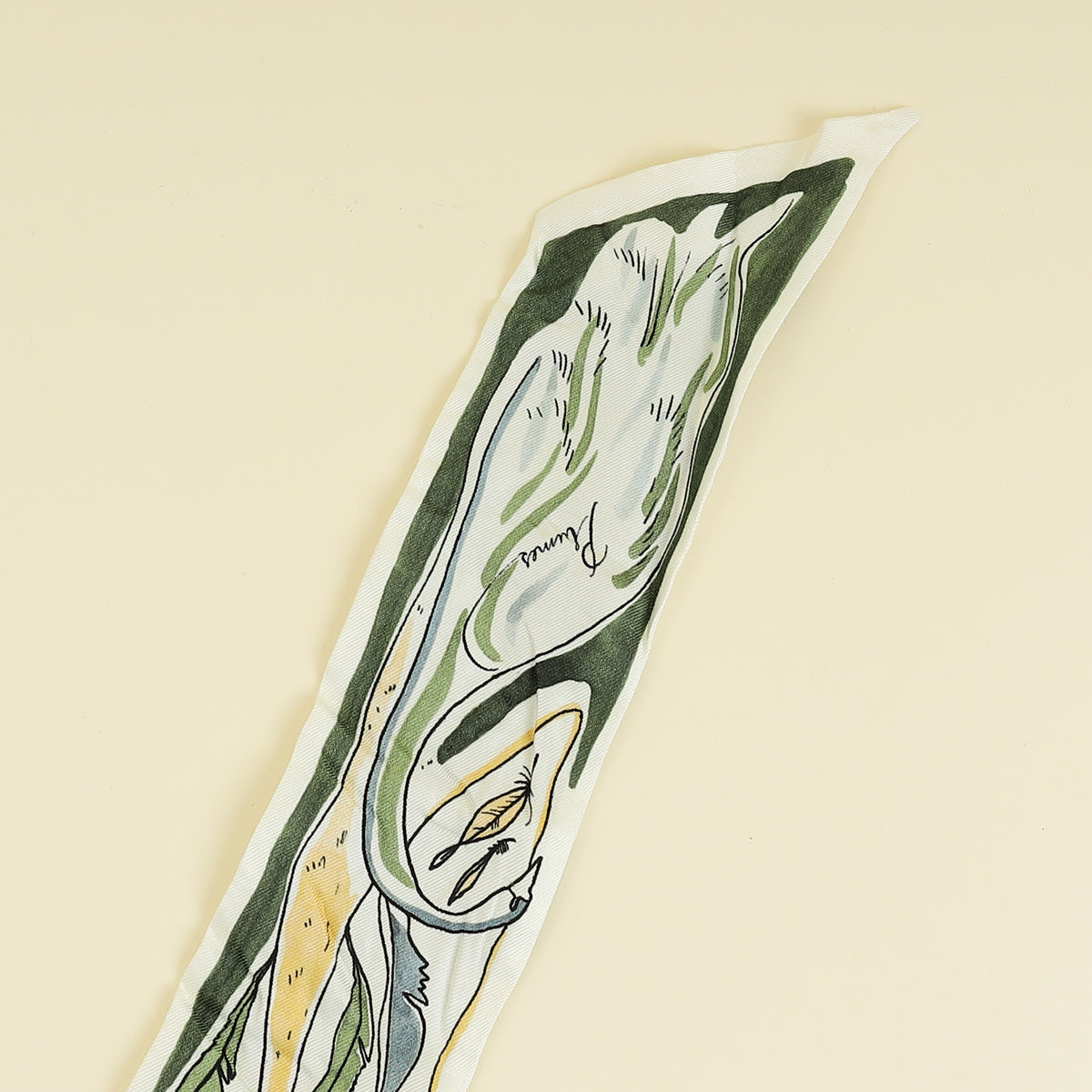Christian Dior Olive Multicolor Plumes Letter Silk Twilly