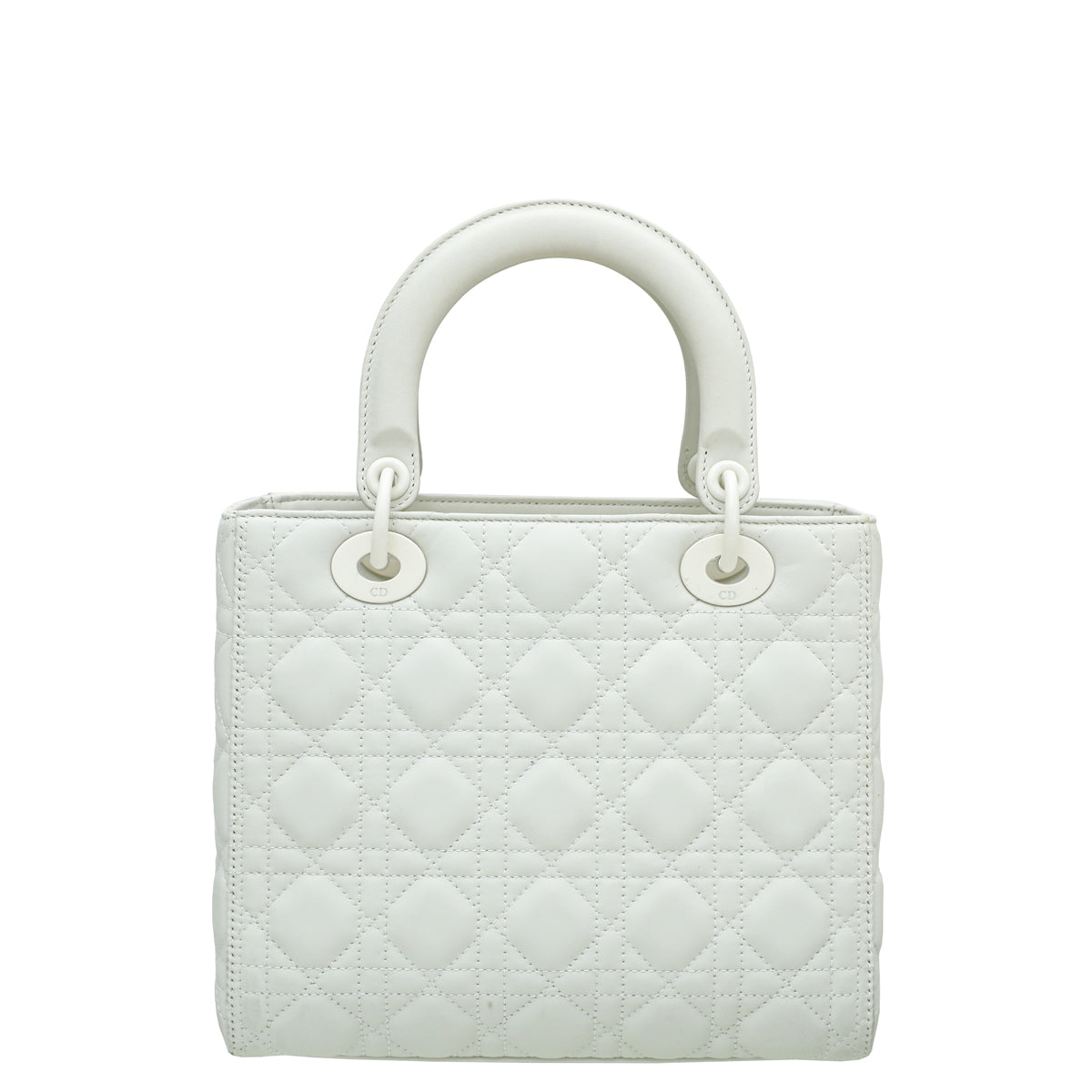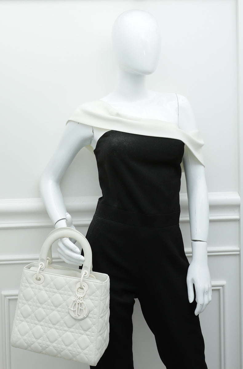 Christian Dior White Ultra Matte Lady Dior Medium Bag