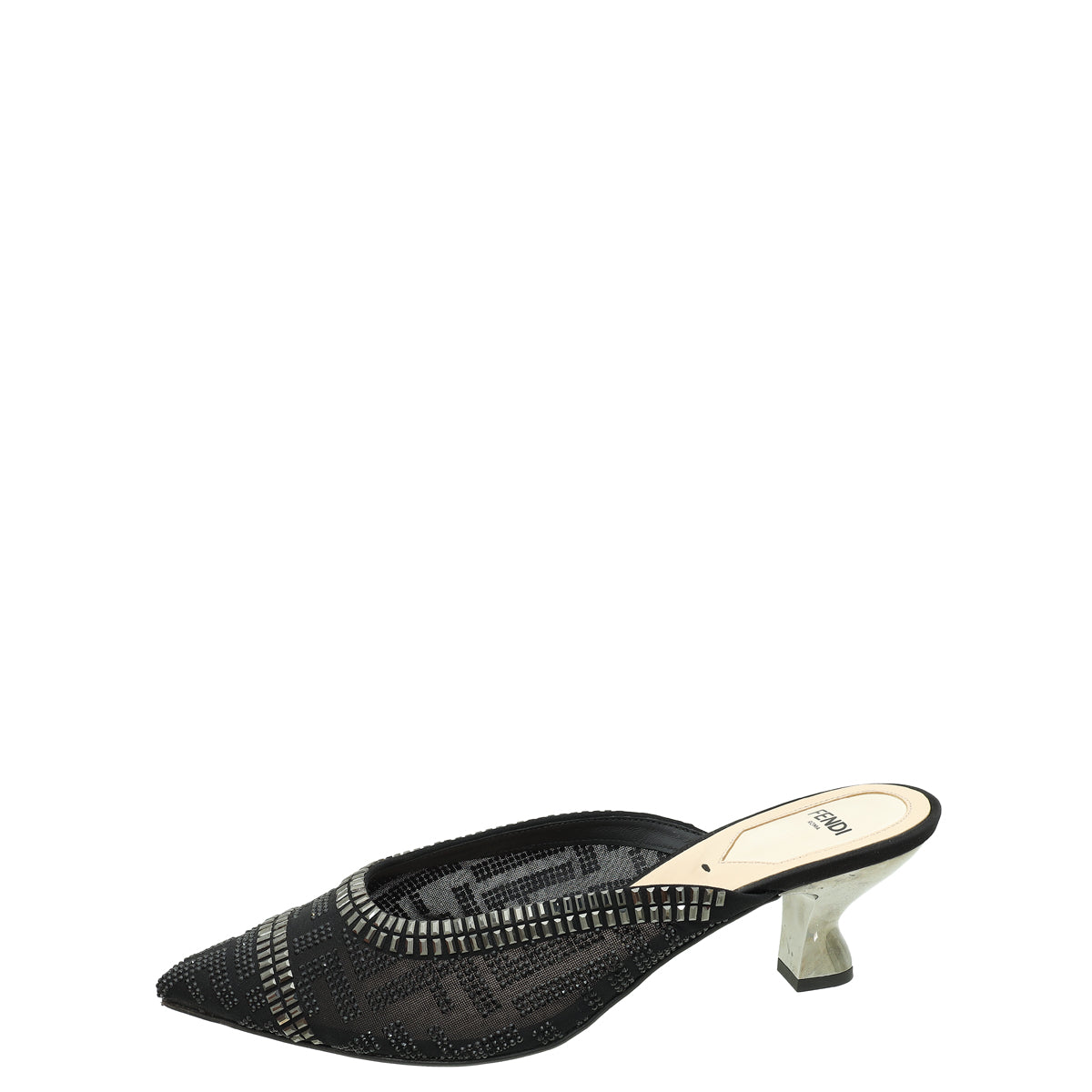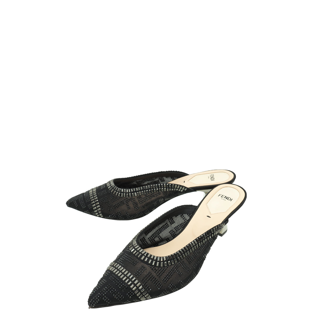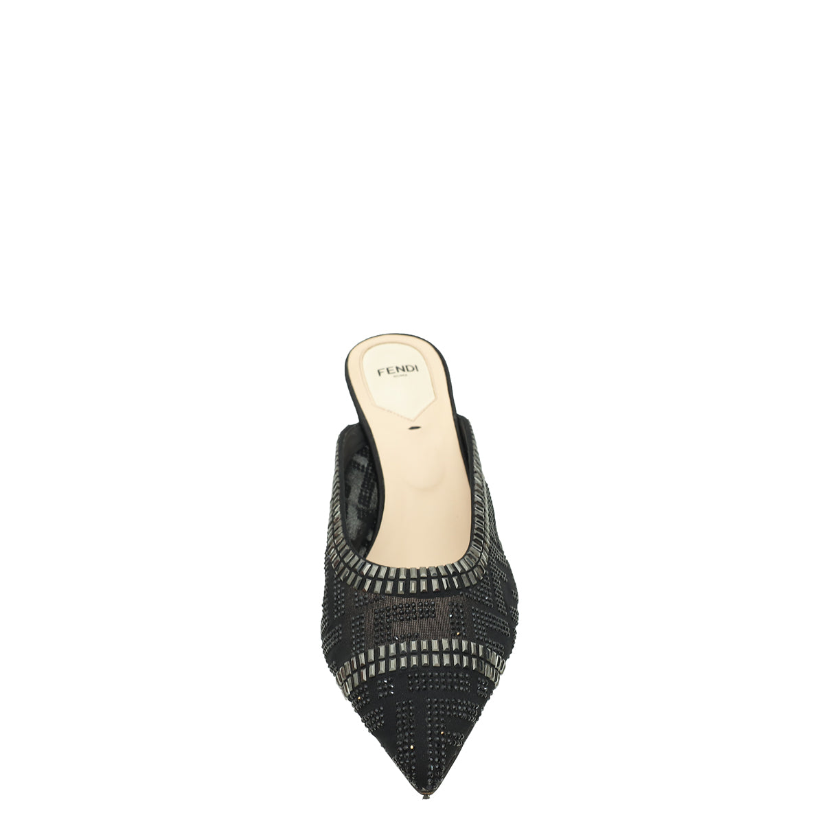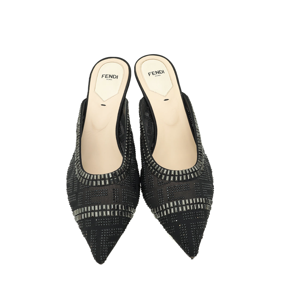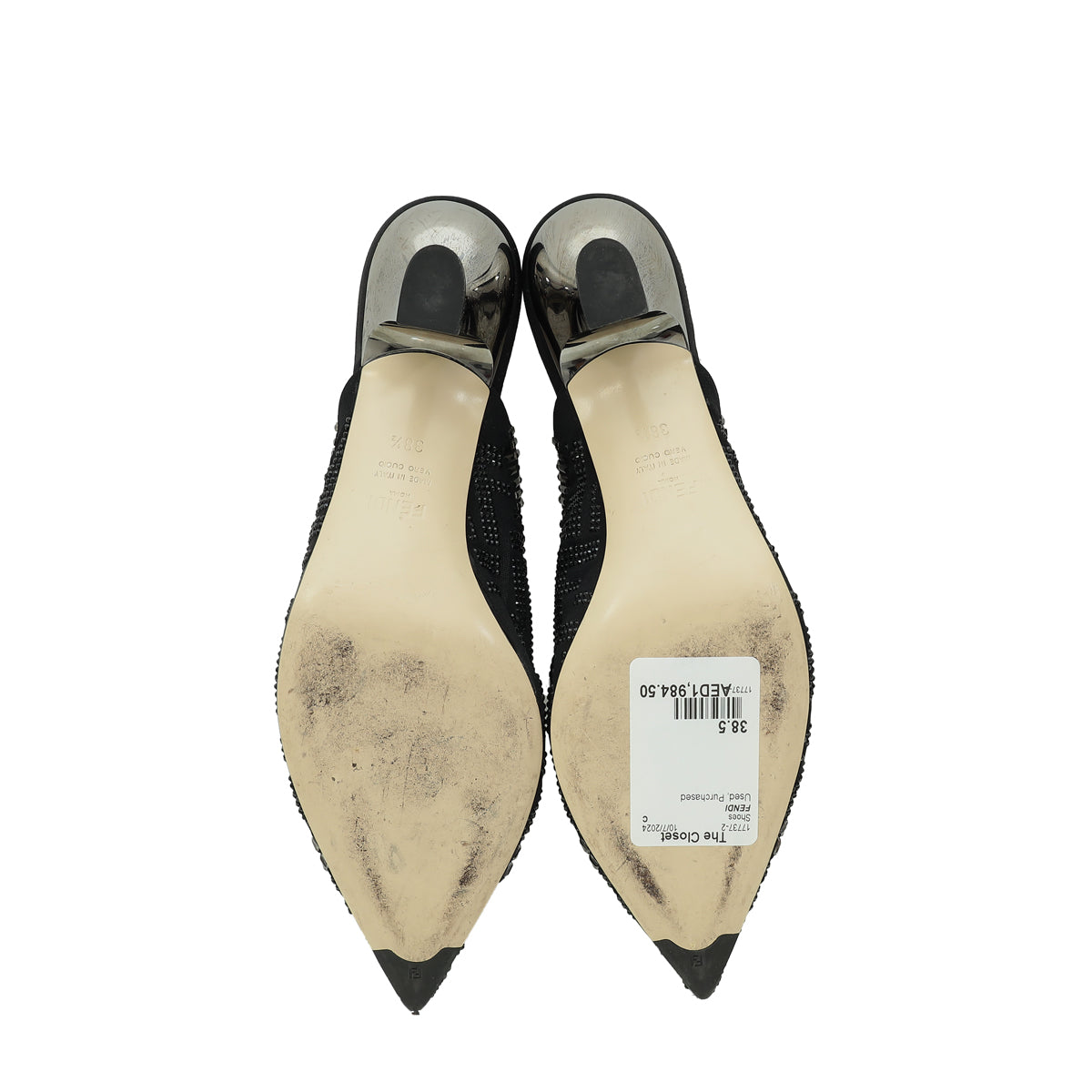 Fendi Black Colibrì Crystal Embellished Mules 38.5