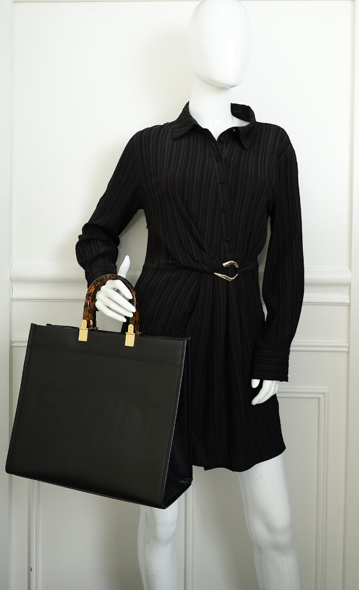 Fendi Black Sunshine Medium Shopping Tote Bag