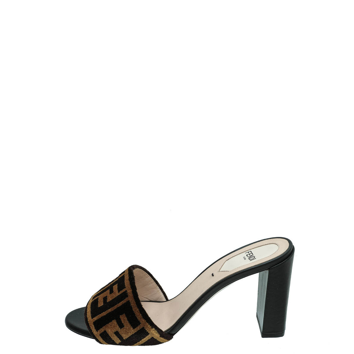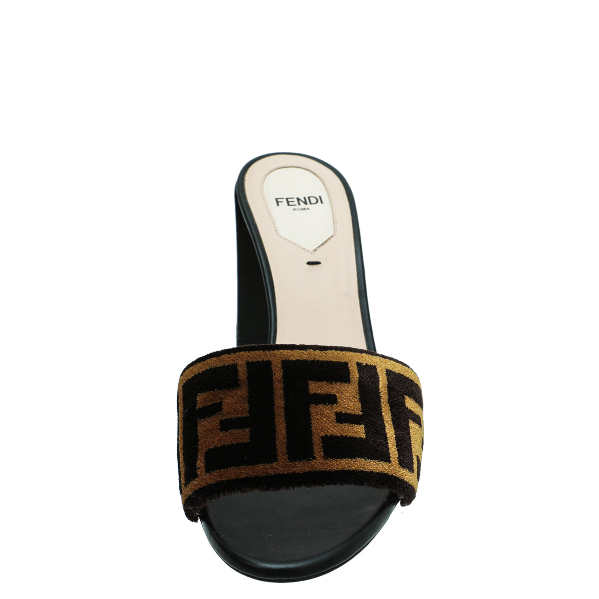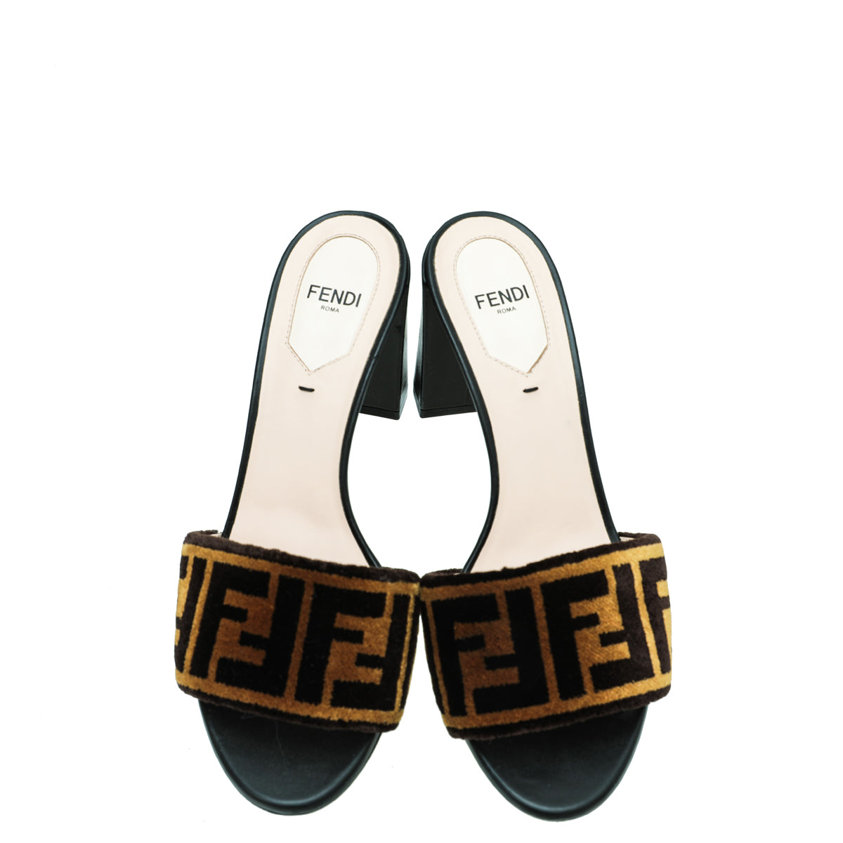 Fendi Brown Velvet FF Slide Heel Sandals 37
