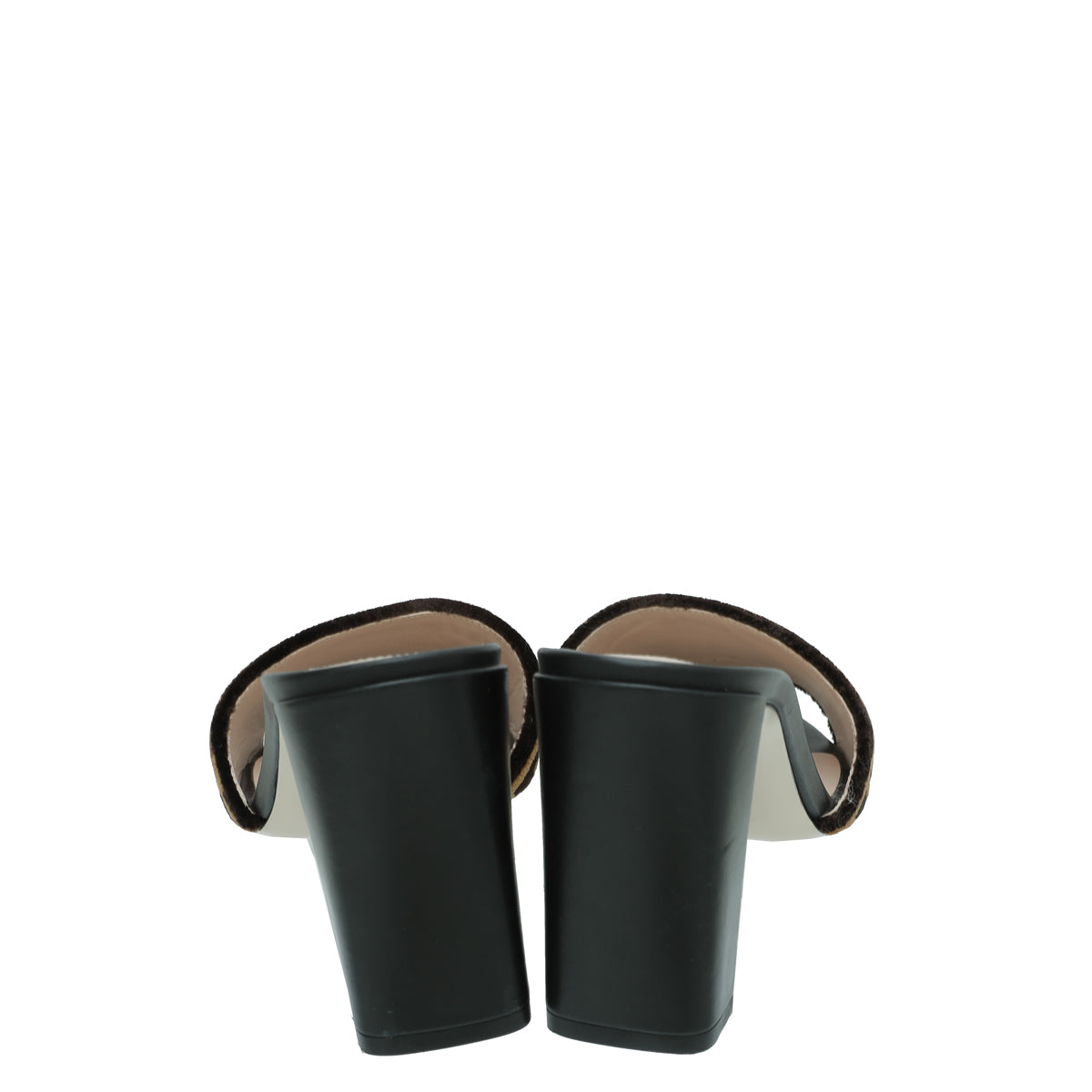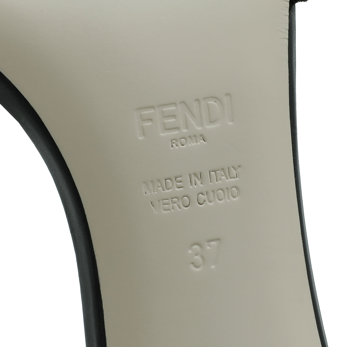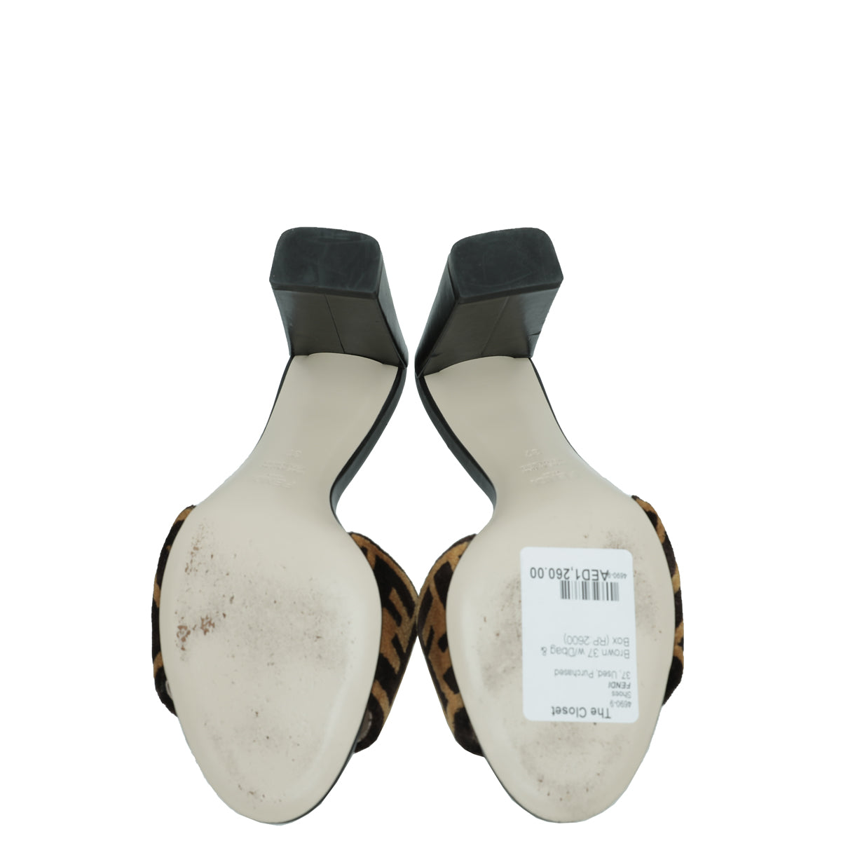 Fendi Brown Velvet FF Slide Heel Sandals 37