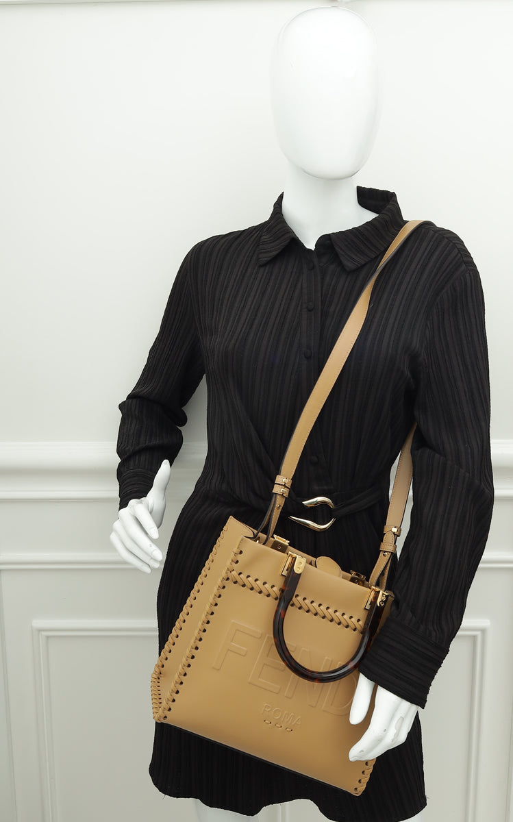 Fendi Camel Brown Sunshine “FENDI ROMA” Shopper Small Bag