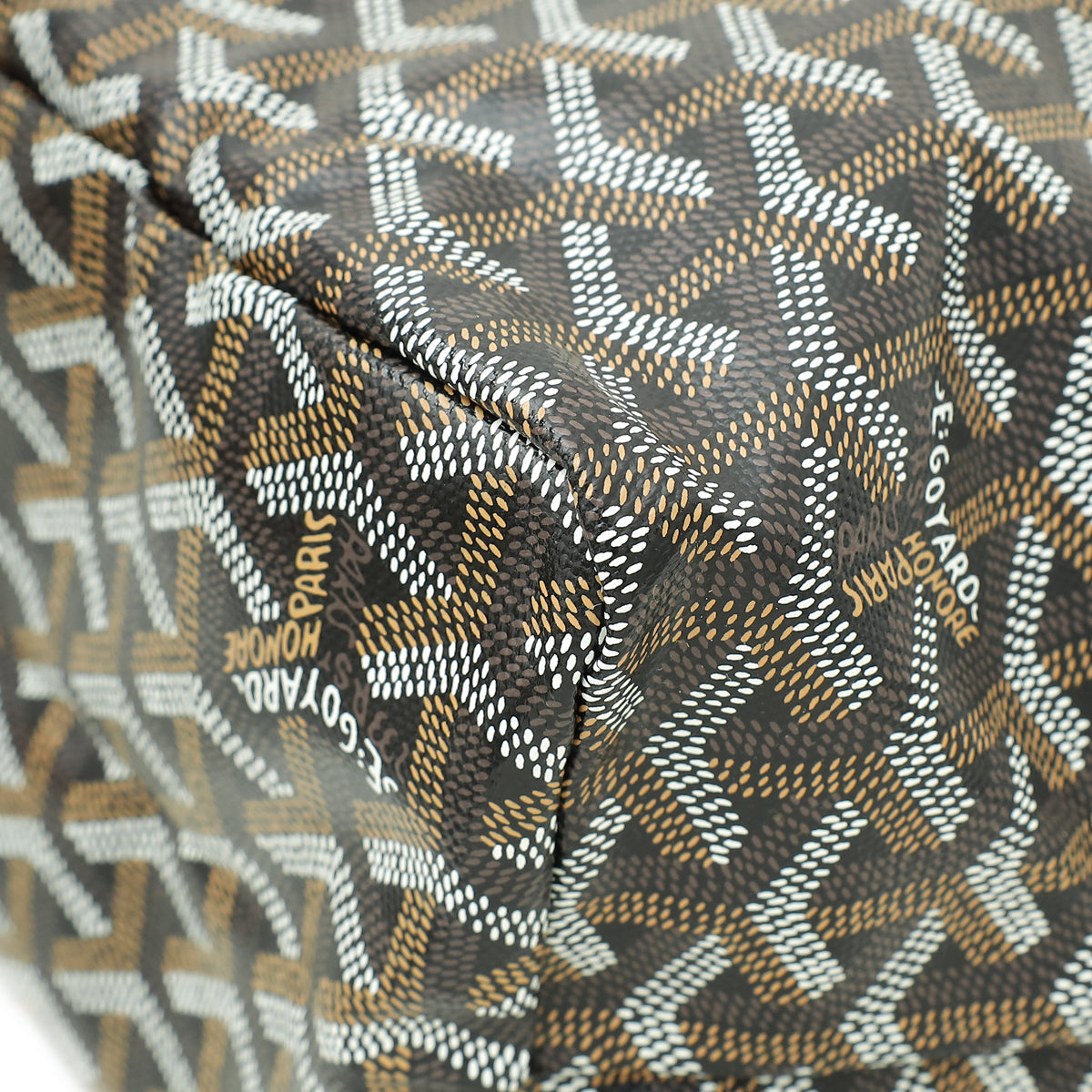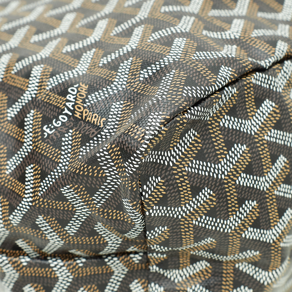 - Material: Black/Tan Goyardine Coated Canvas with Leather Trim