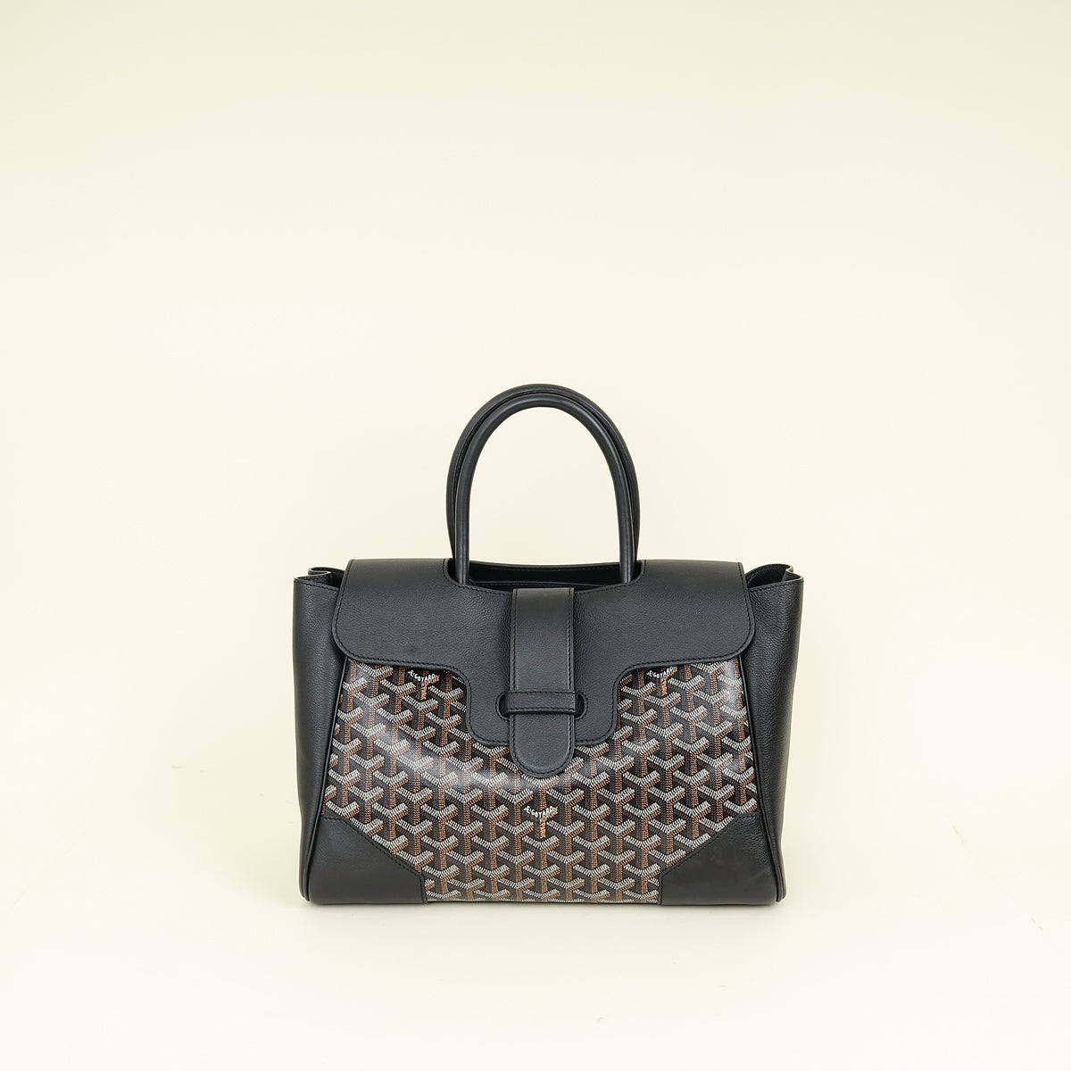 Goyard Black Goyardine Cabas Saigon MM Tote Bag