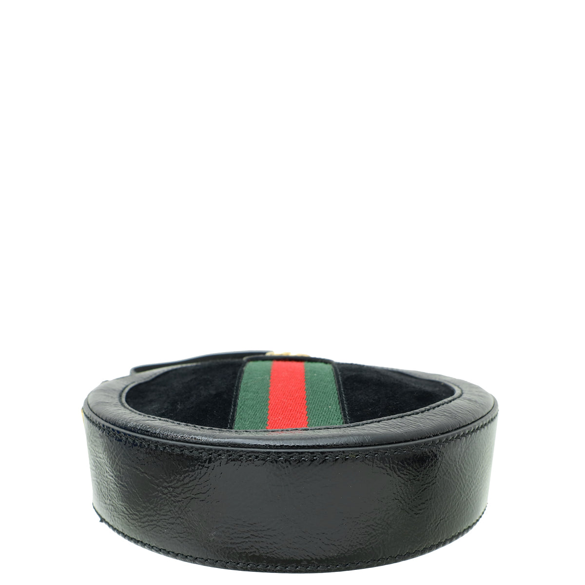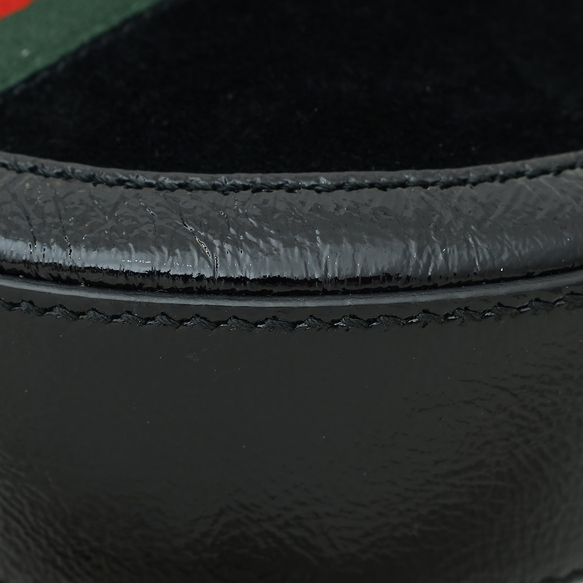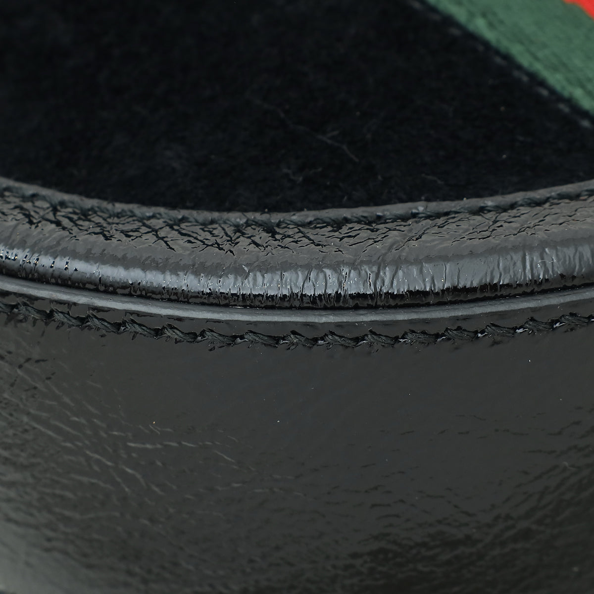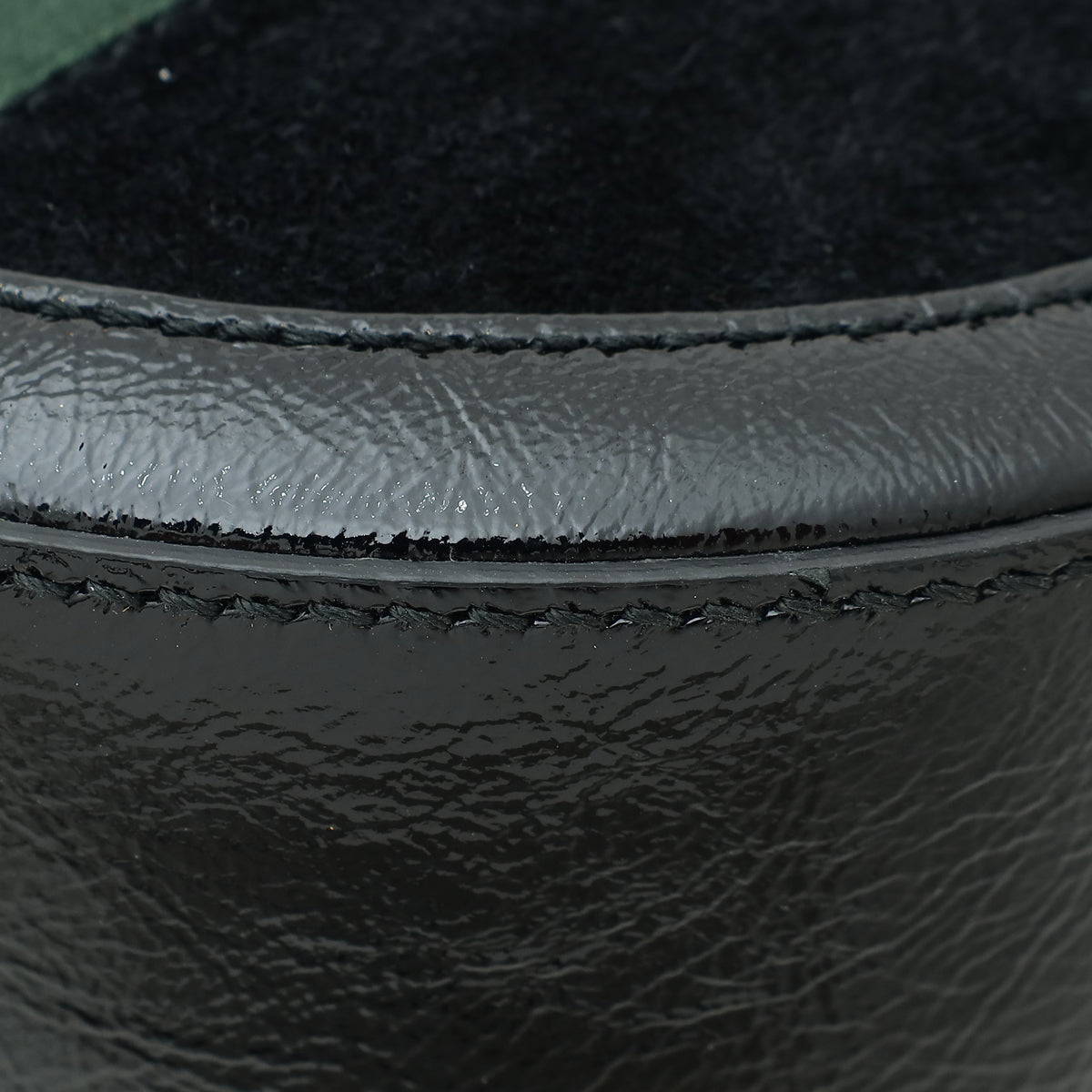 - Material: Black Patent Leather and Suede with Green/Red Web Details