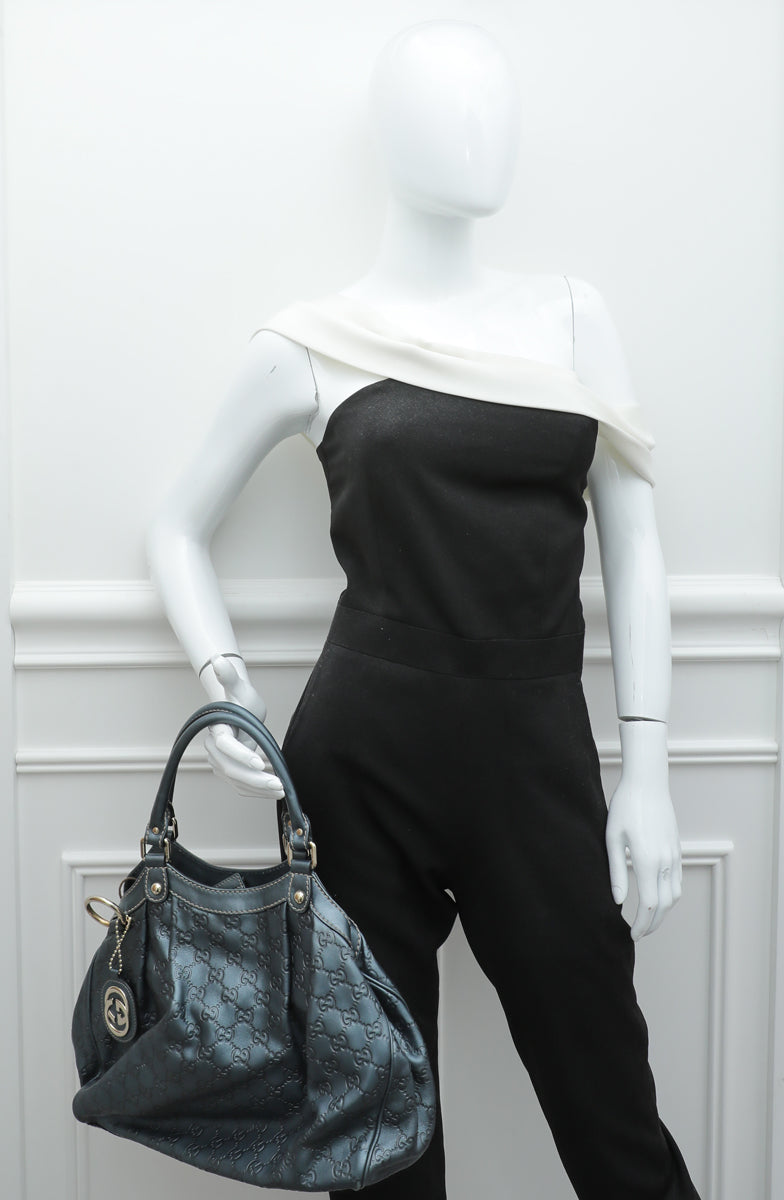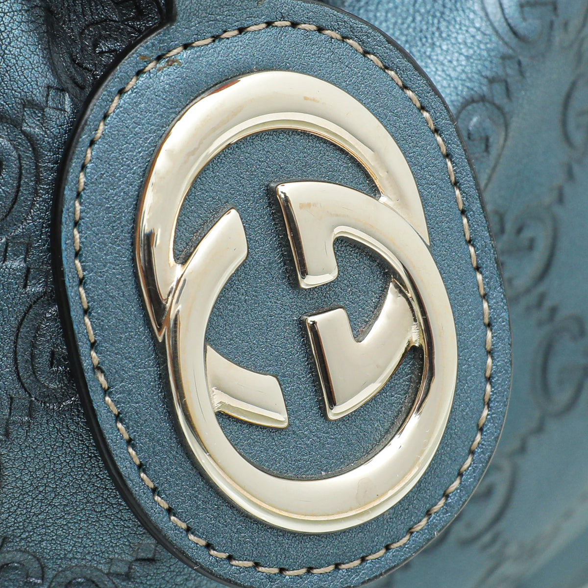 Gucci Metallic Slate Blue Guccissima Sukey Tote Medium Bag