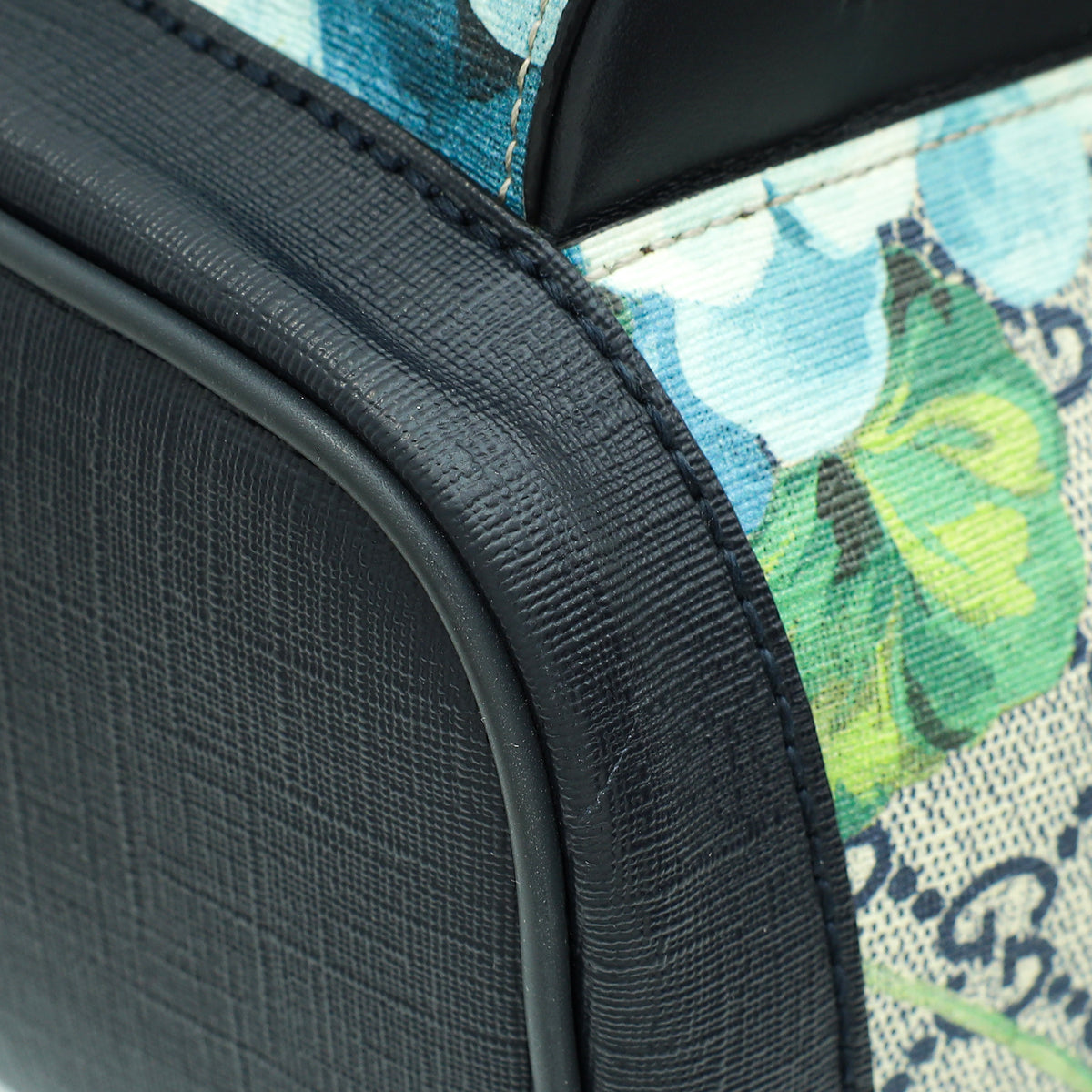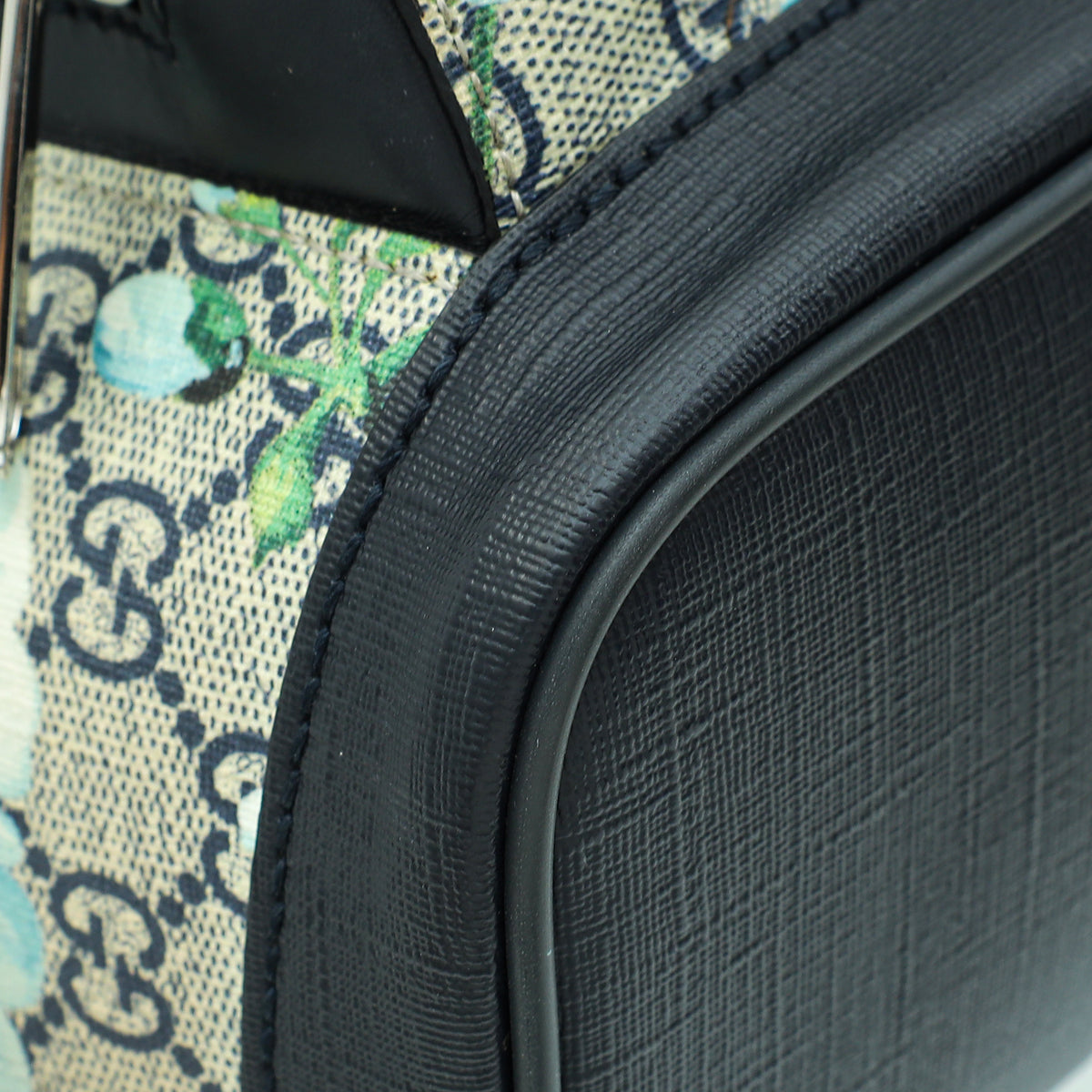Material: Ebony GG Supreme Canvas with Multicolor Blooms Print and Navy Blue Leather Trim