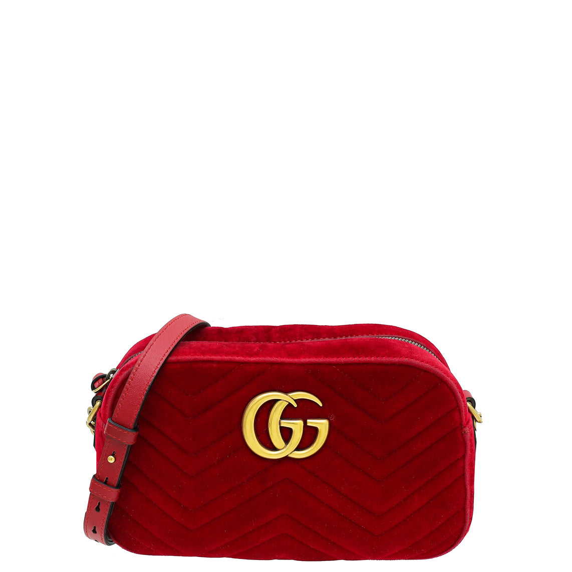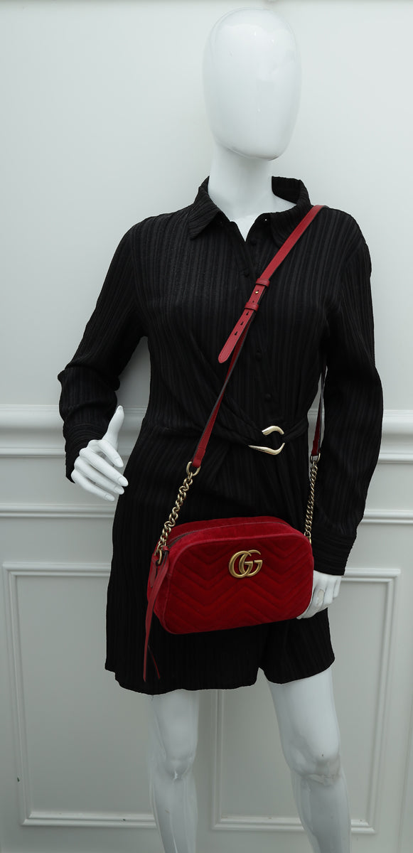 Gucci Red Velvet GG Marmont Small Camera Shoulder Bag