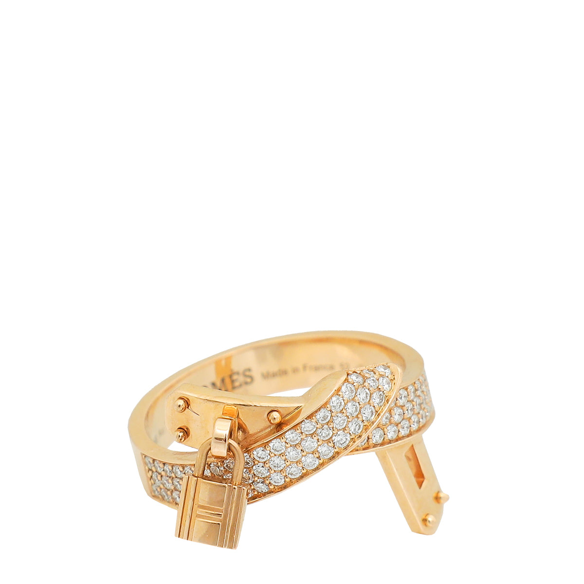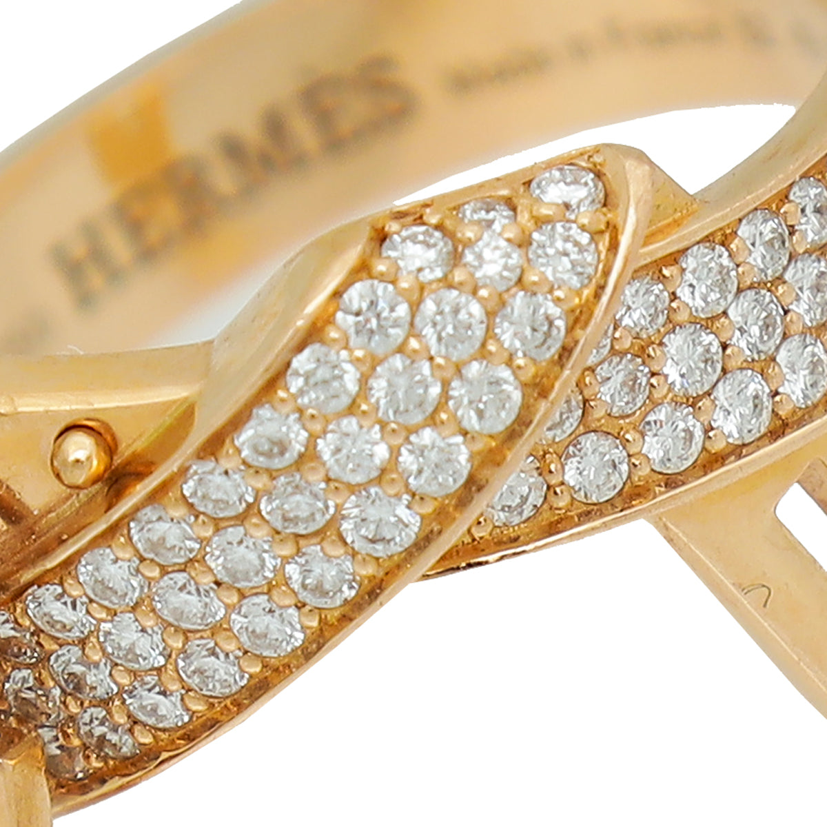 Hermes 18K Rose Gold Diamond Kelly Gavroche Ring 52