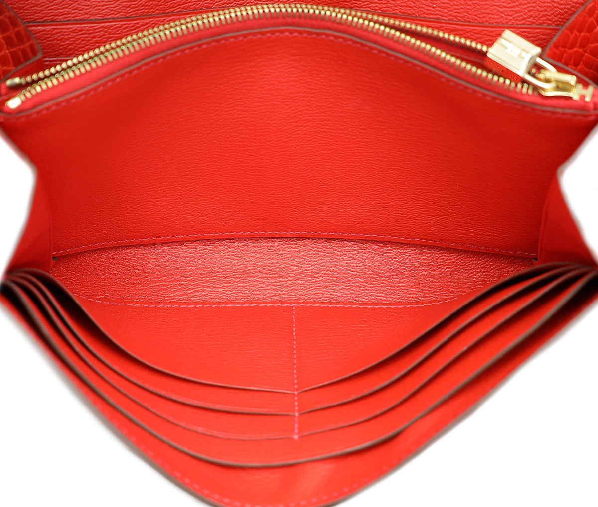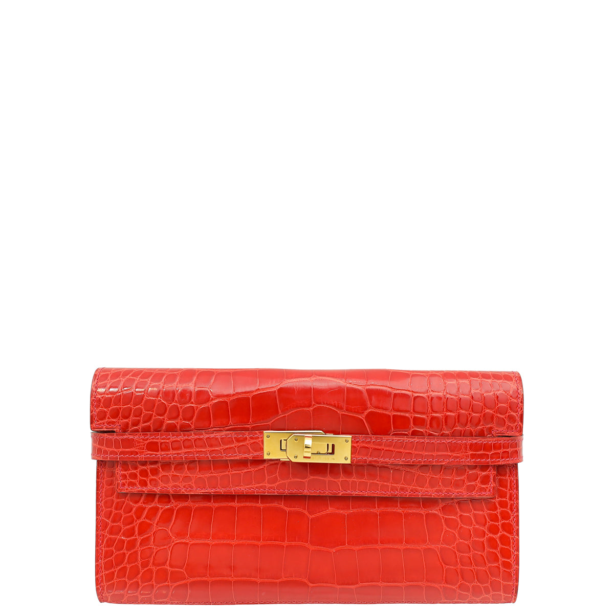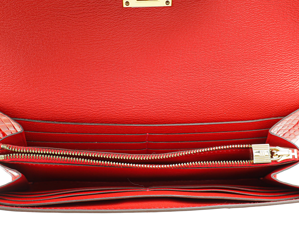 Hermes Geranium Shiny Alligator Kelly Longue Wallet