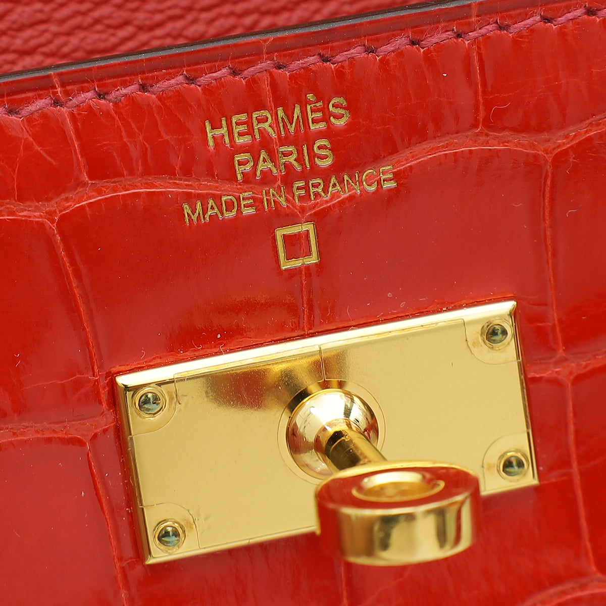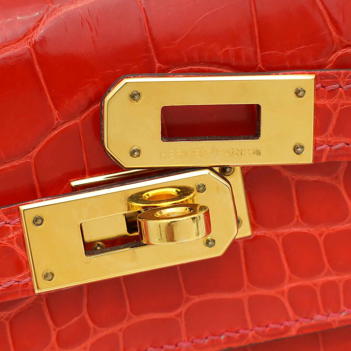 - Material: Geranium Shiny Alligator Leather