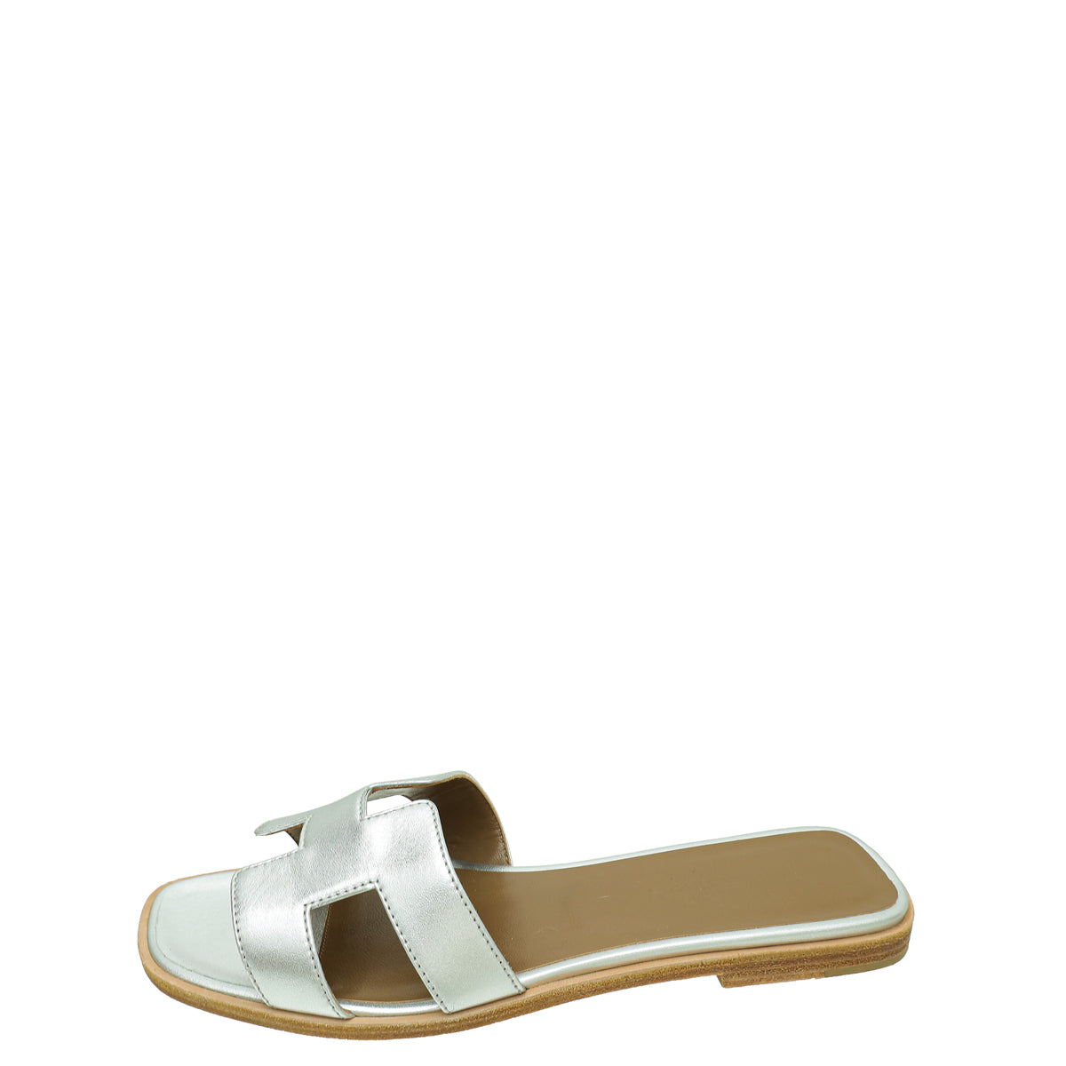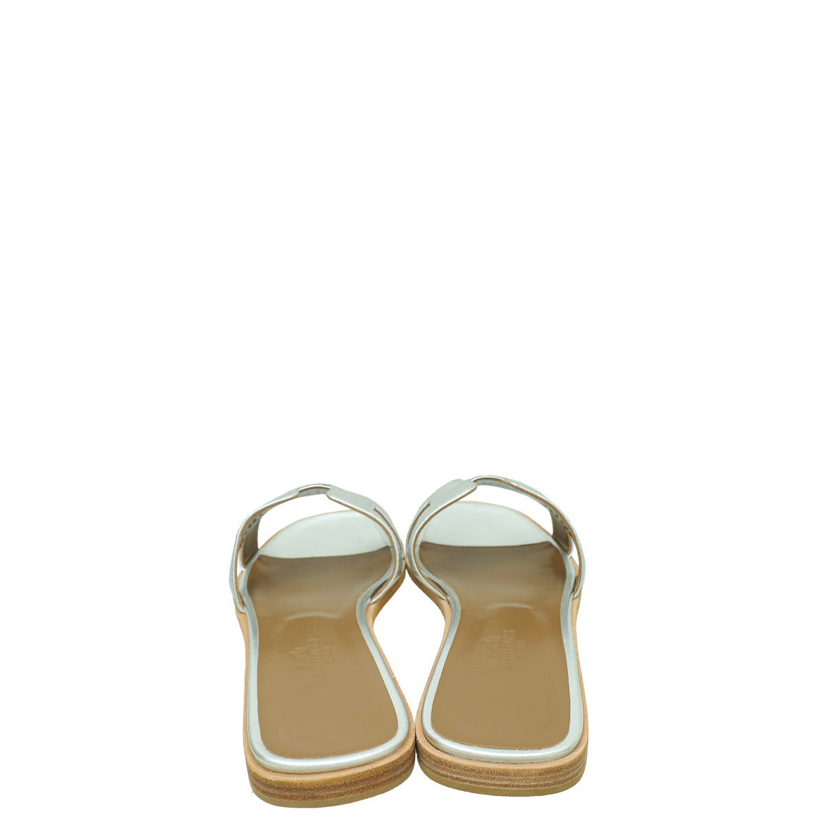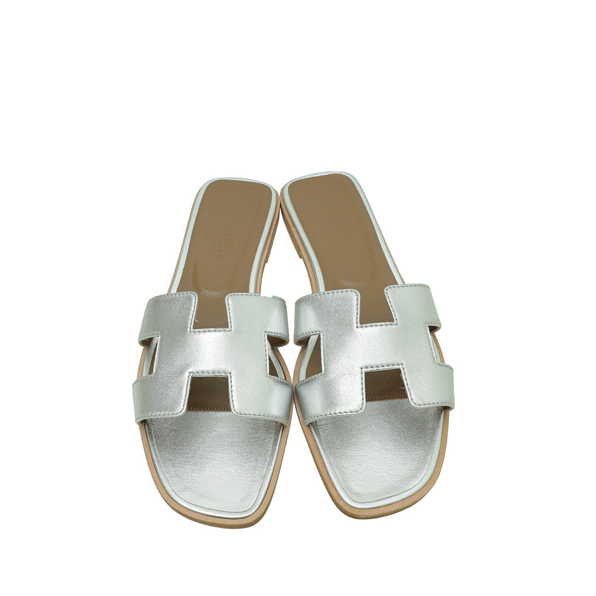 Hermes Gris Argenté Vieilli Metallic Nappa Oran Sandal 39