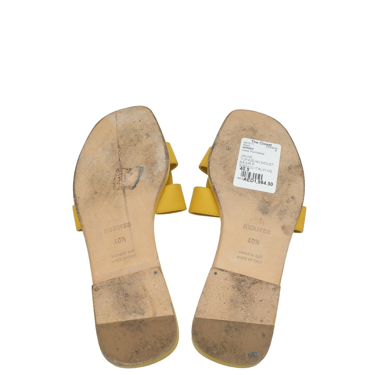 Hermes Jaune Topaze Oran Sandal 40.5