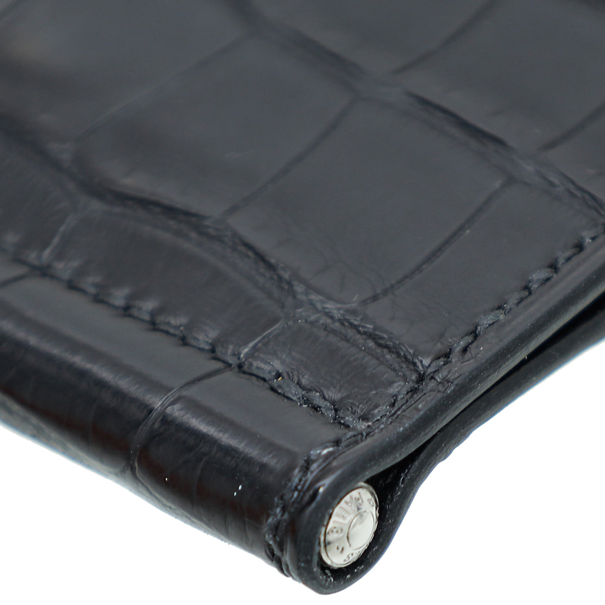 Hermes Noir Alligator Poker Mississippiensis Compact Wallet
