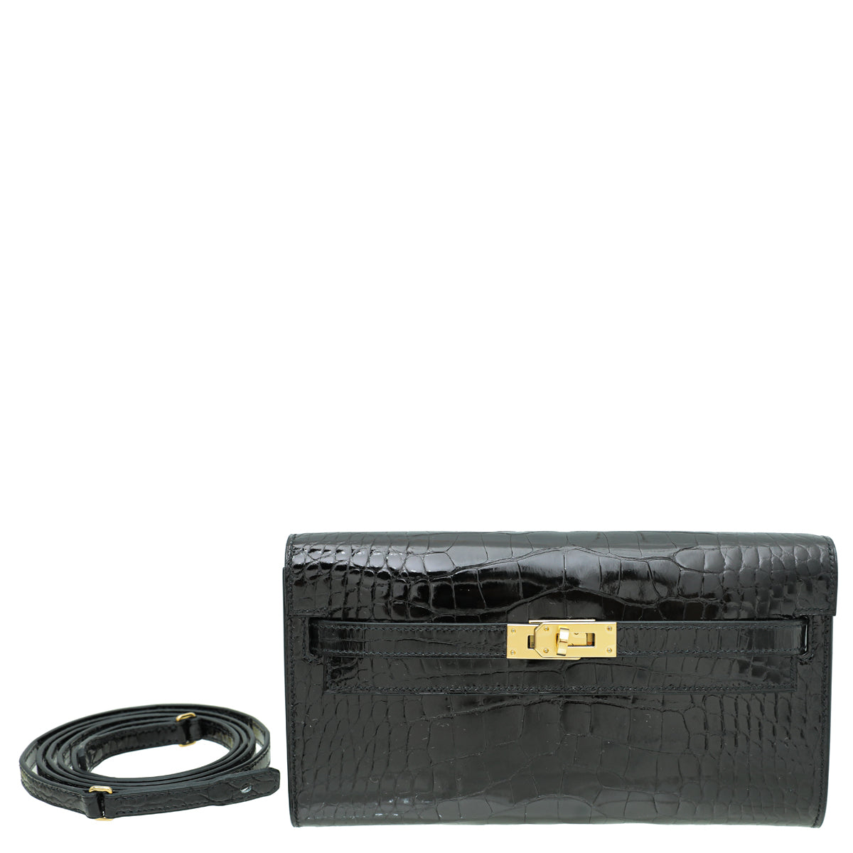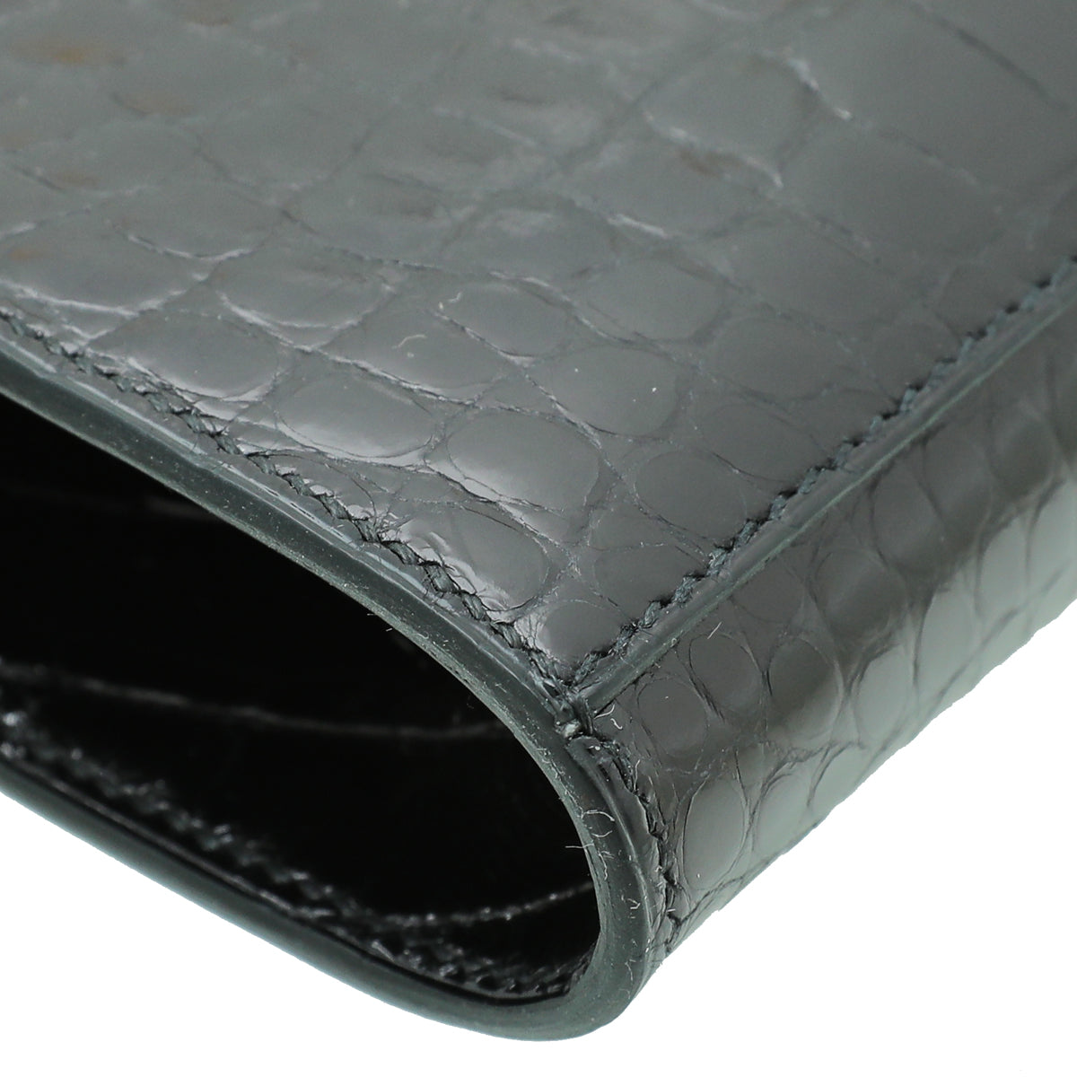 Hermes Noir Alligator To Go Mississippiensis Kelly Wallet-Hermes-THE CLOSET