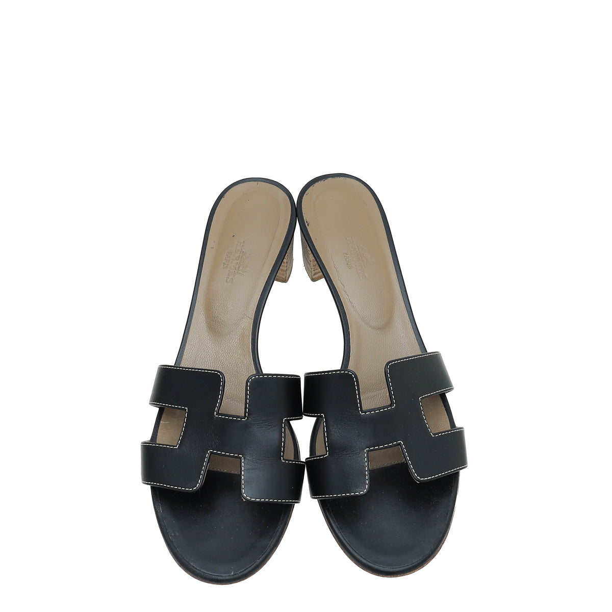 Hermes Noir Oasis Sandals 39.5-Hermes-THE CLOSET