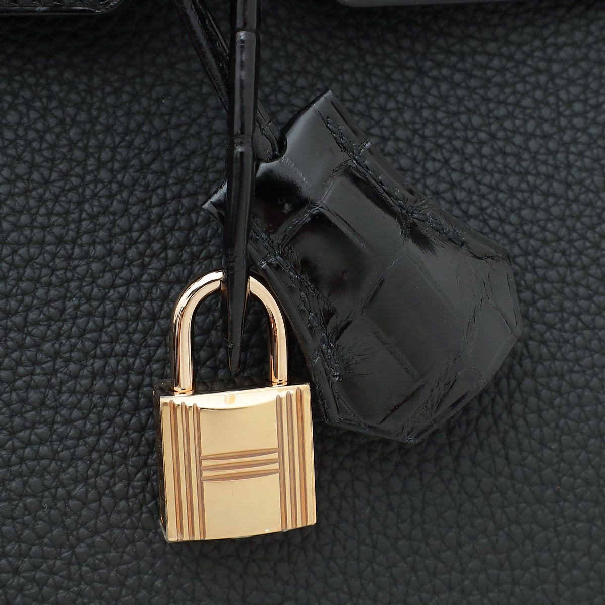Hermes Noir Touch Niloticus Crocodile Birkin 30 Bag