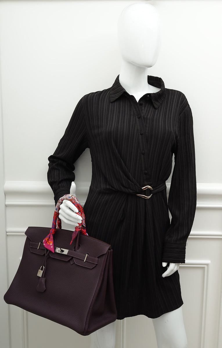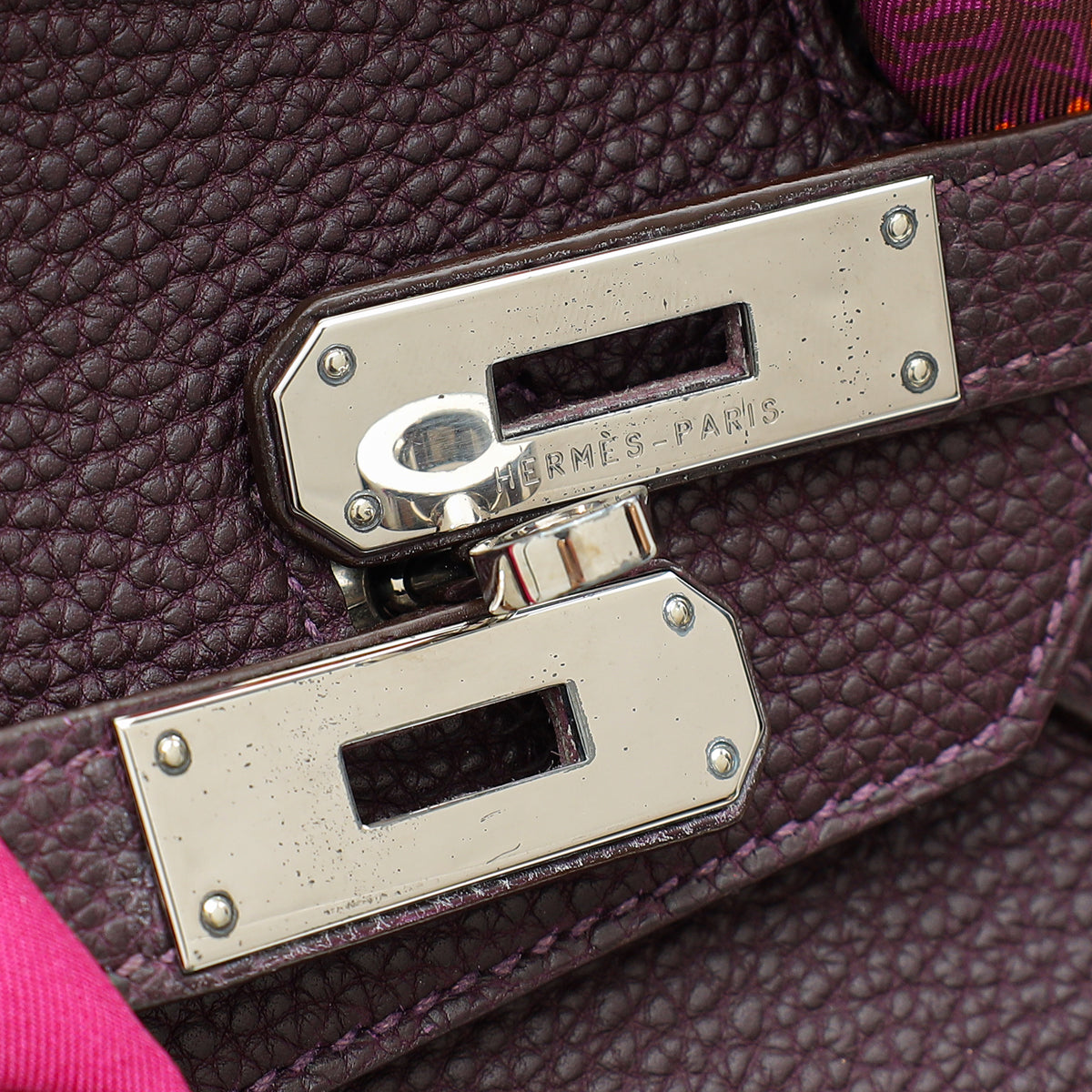 Hermes Raisin Birkin 35 Bag W/ 2 Twilly