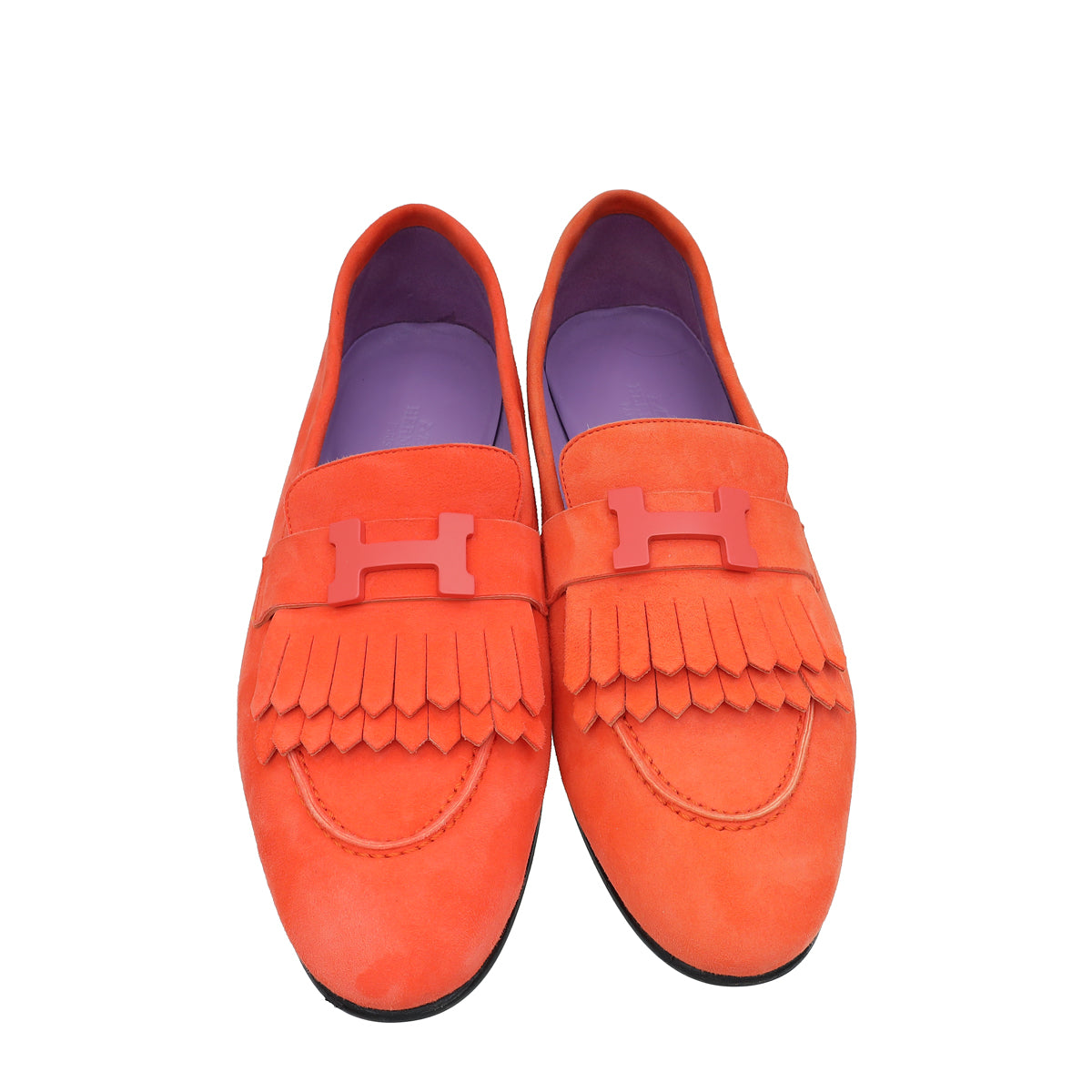 - Material: Rose Sorbet Suede Goatskin with Fringe Detail and Tone on Tone Signature "H" Detail.