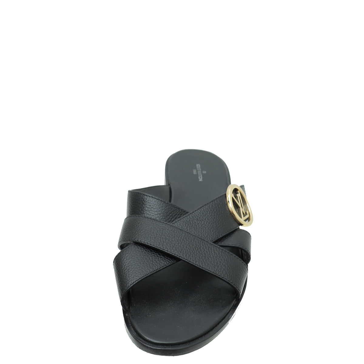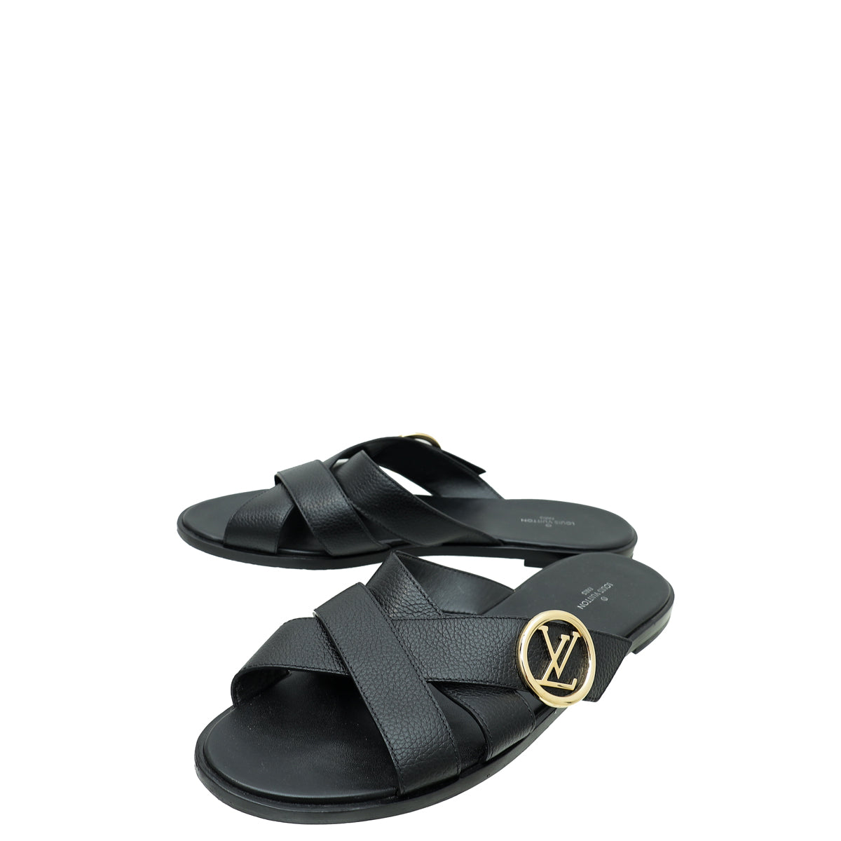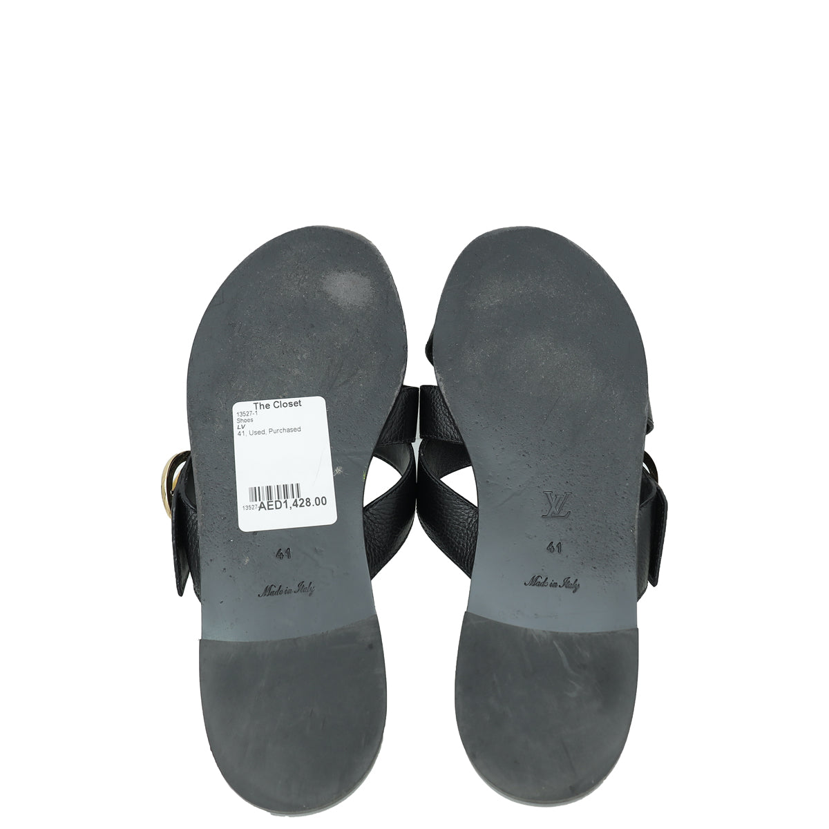 Louis Vuitton Black Cross Strap Flat Sandals 41