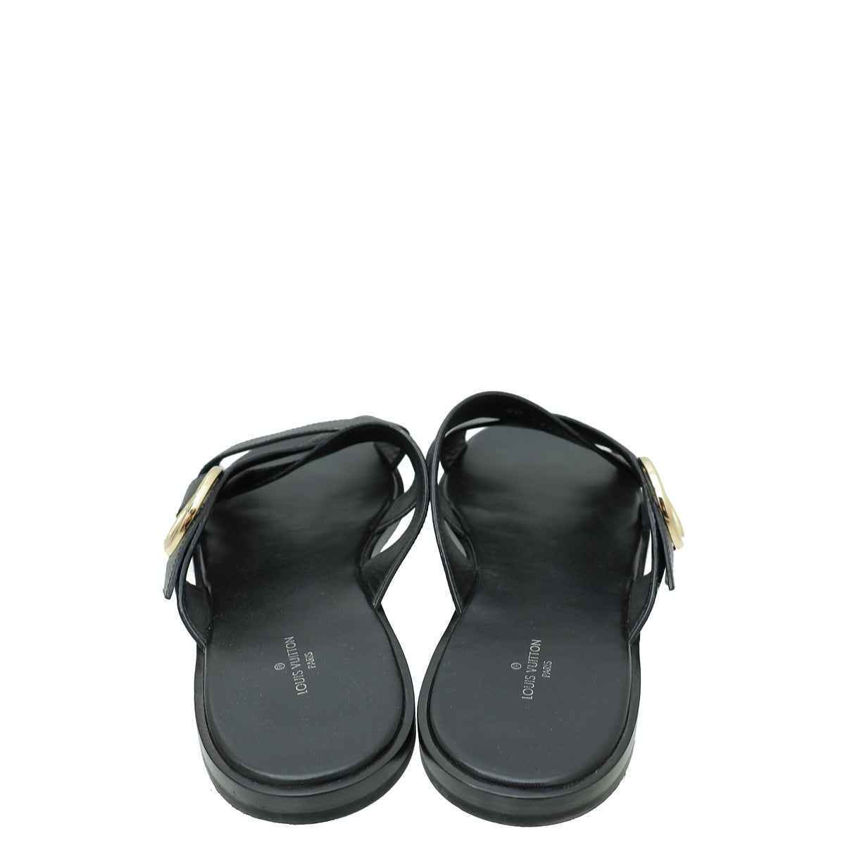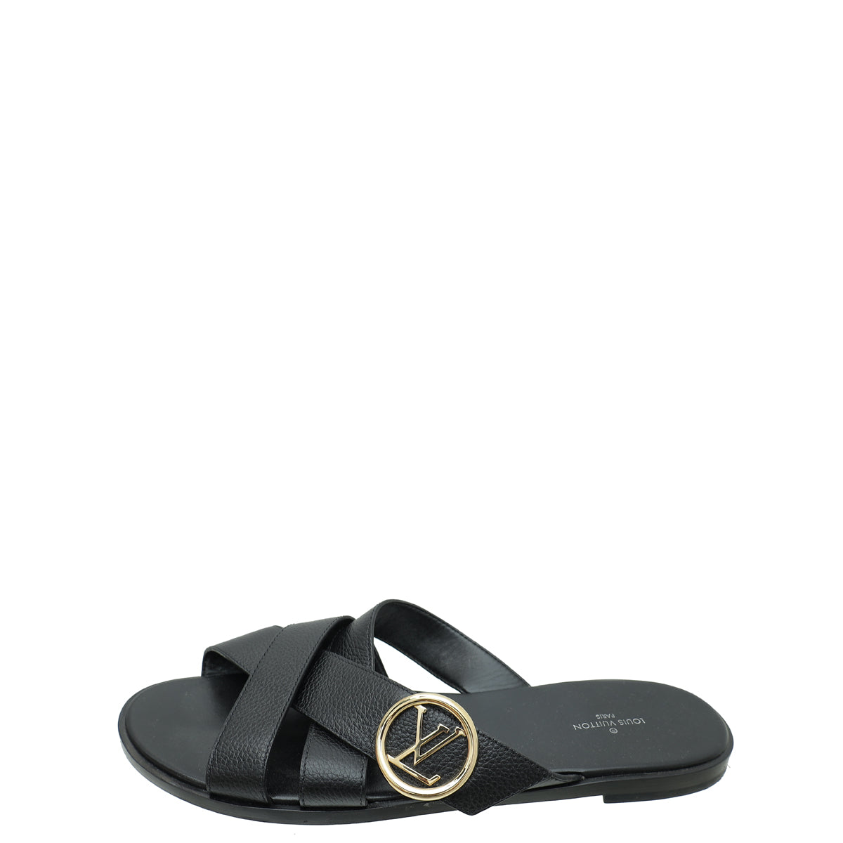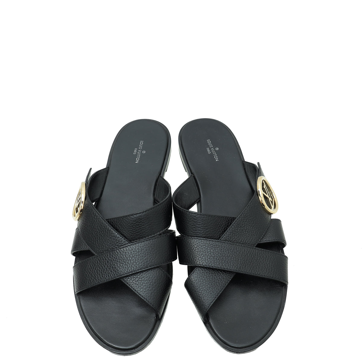Louis Vuitton Black Cross Strap Flat Sandals 41