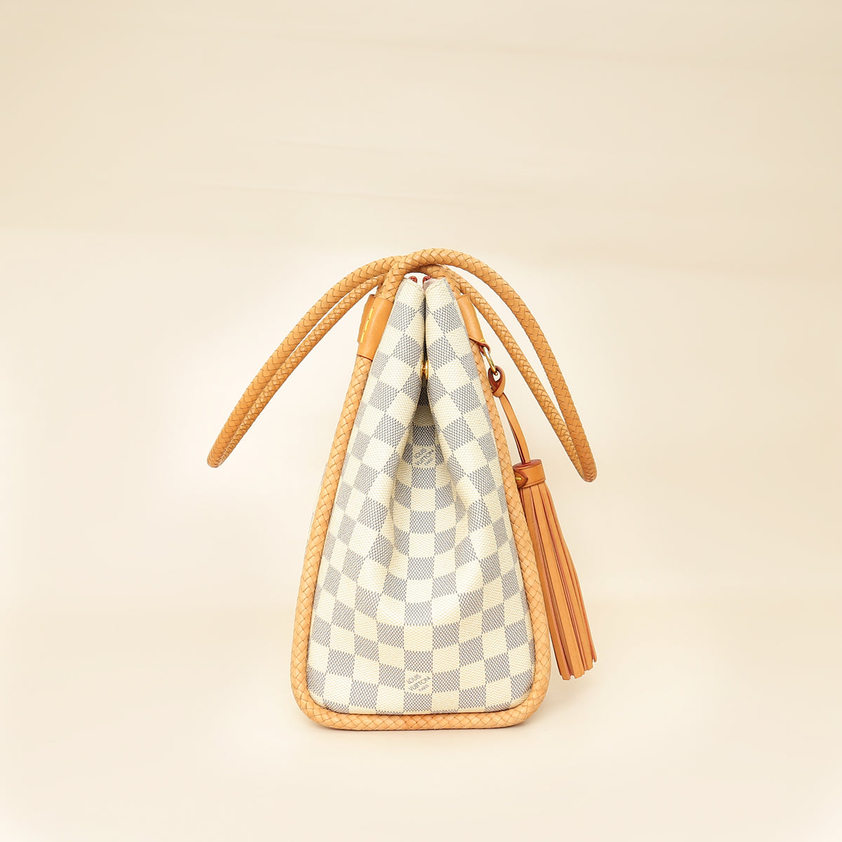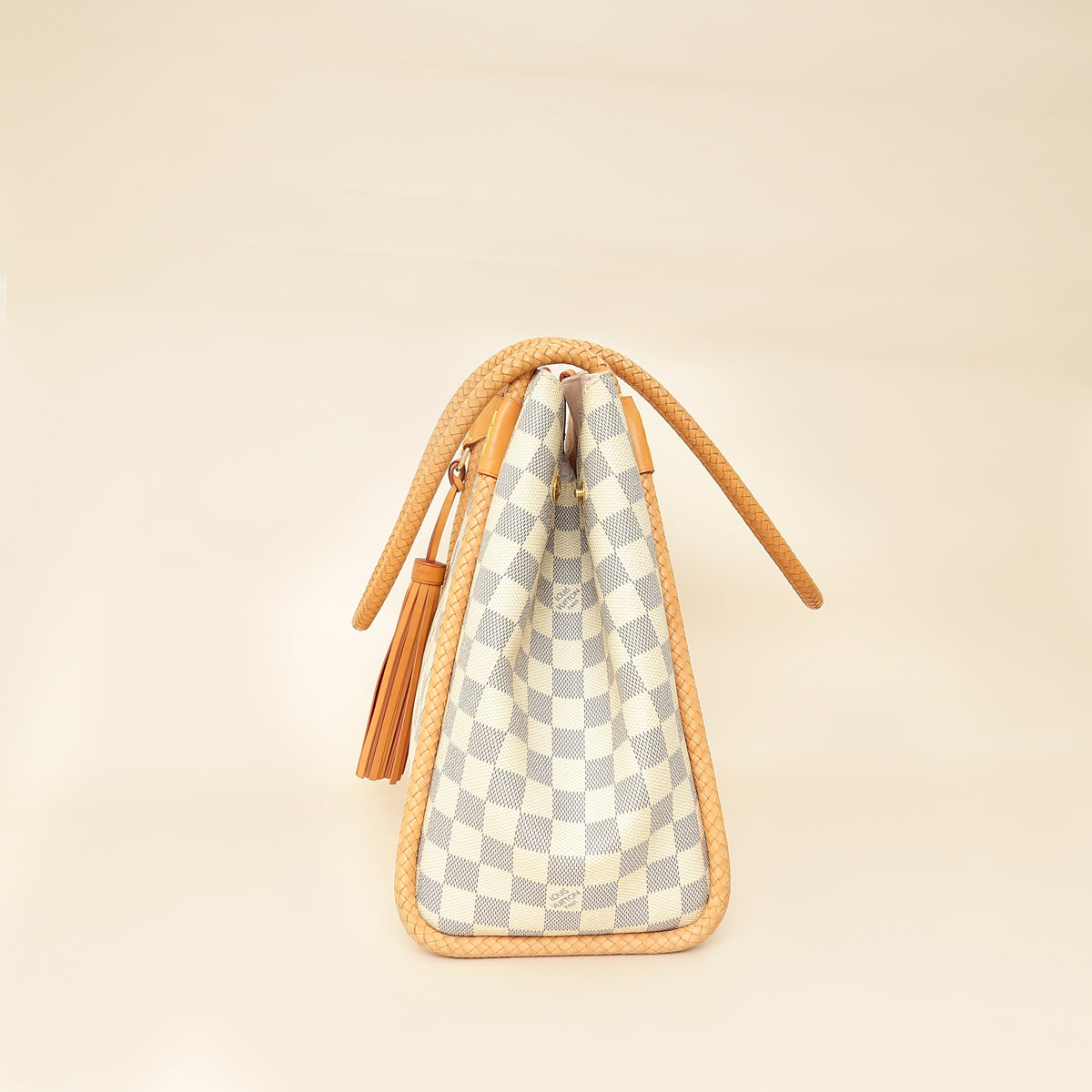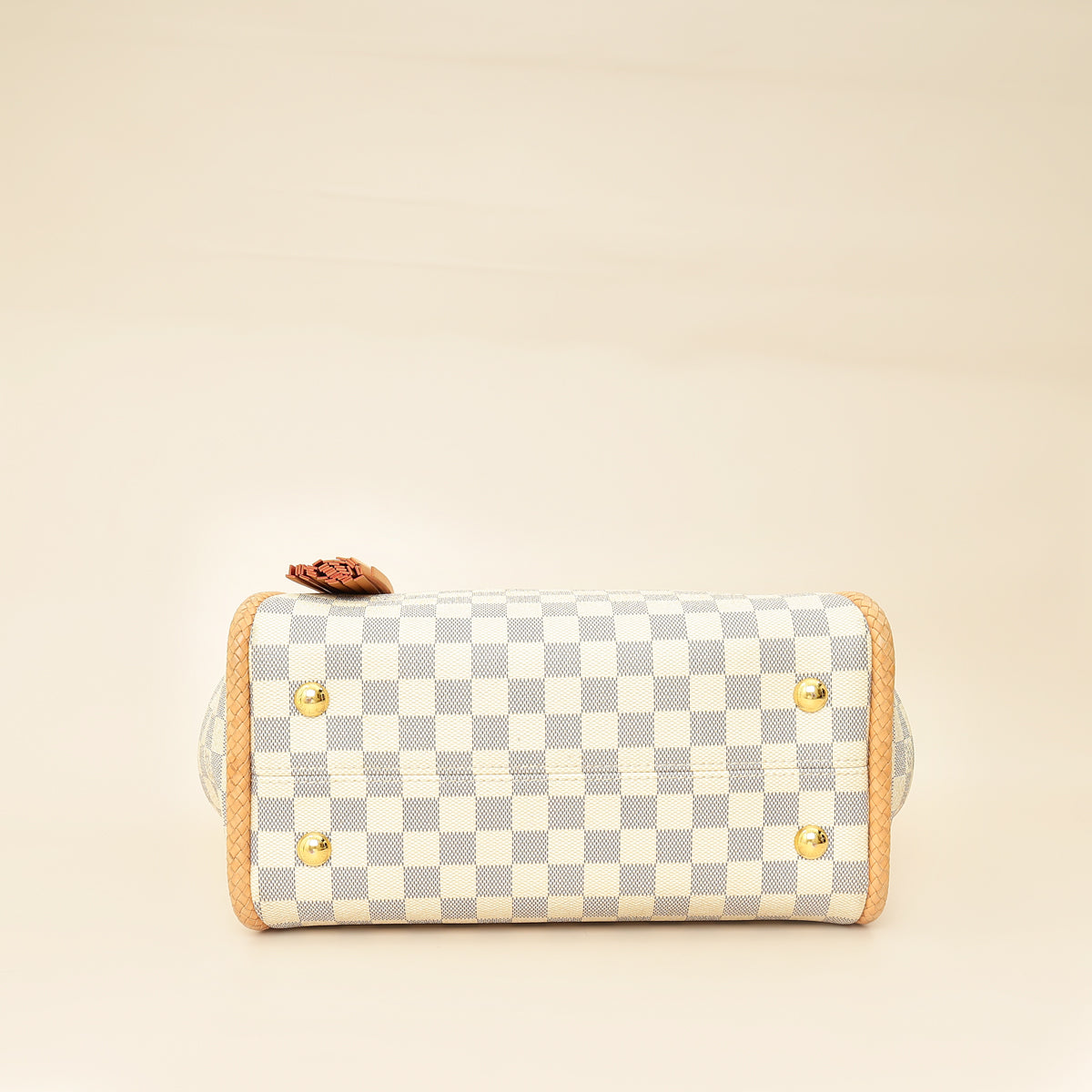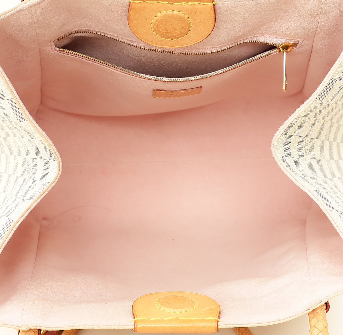 - Material: Damier Azur Coated Canvas with Natural Cowhide Leather Trim and Interior Rose Ballerine